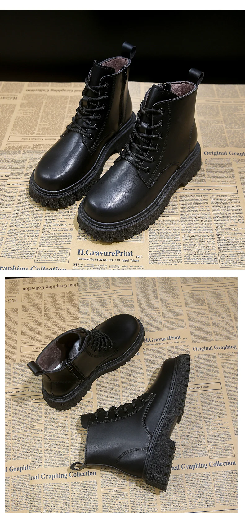 Модные ботинки на платформе; Обувь на массивном каблуке; Цвет Черны...