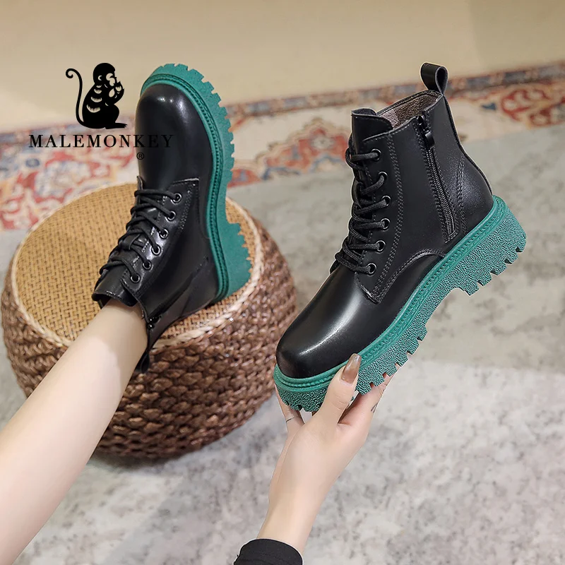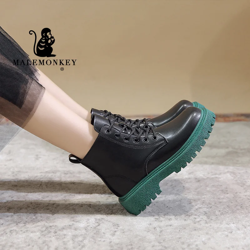 Женские ботинки на платформе, мотоциклетные ботинки на массивном ка...