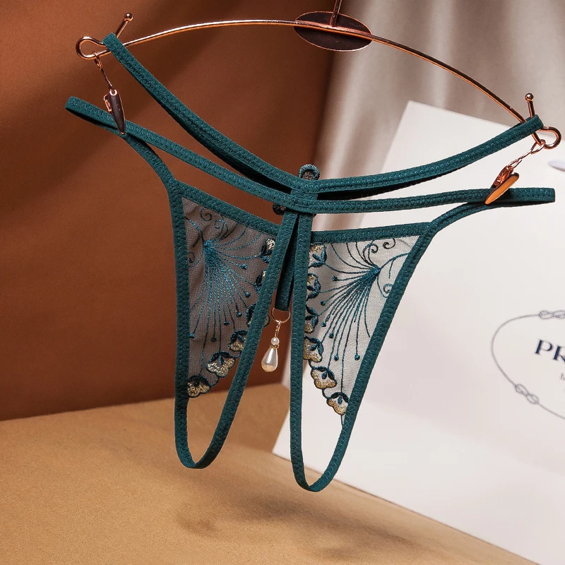 Стринги открытые трусики с вышивкой, жемчугом и бисером, 2197