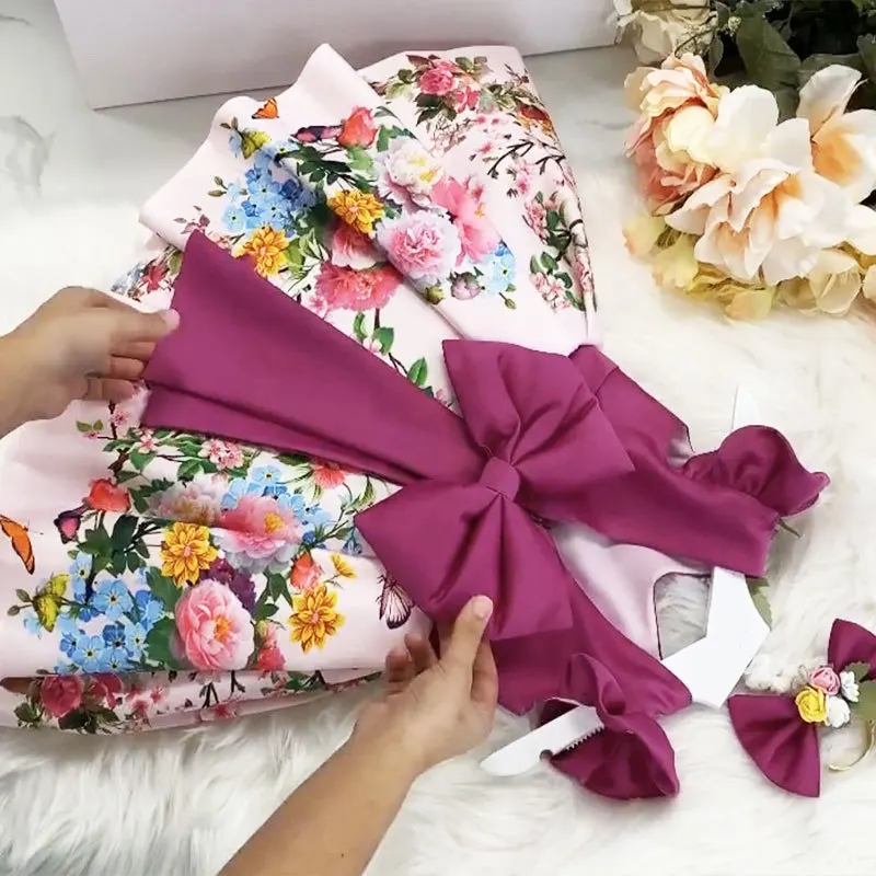 Новинка 2022, бальное платье с цветочным принтом, для маленьких девочек, для свадьбы, вечеринки, ярко-фиолетовый роскошный детский костюм для девочек