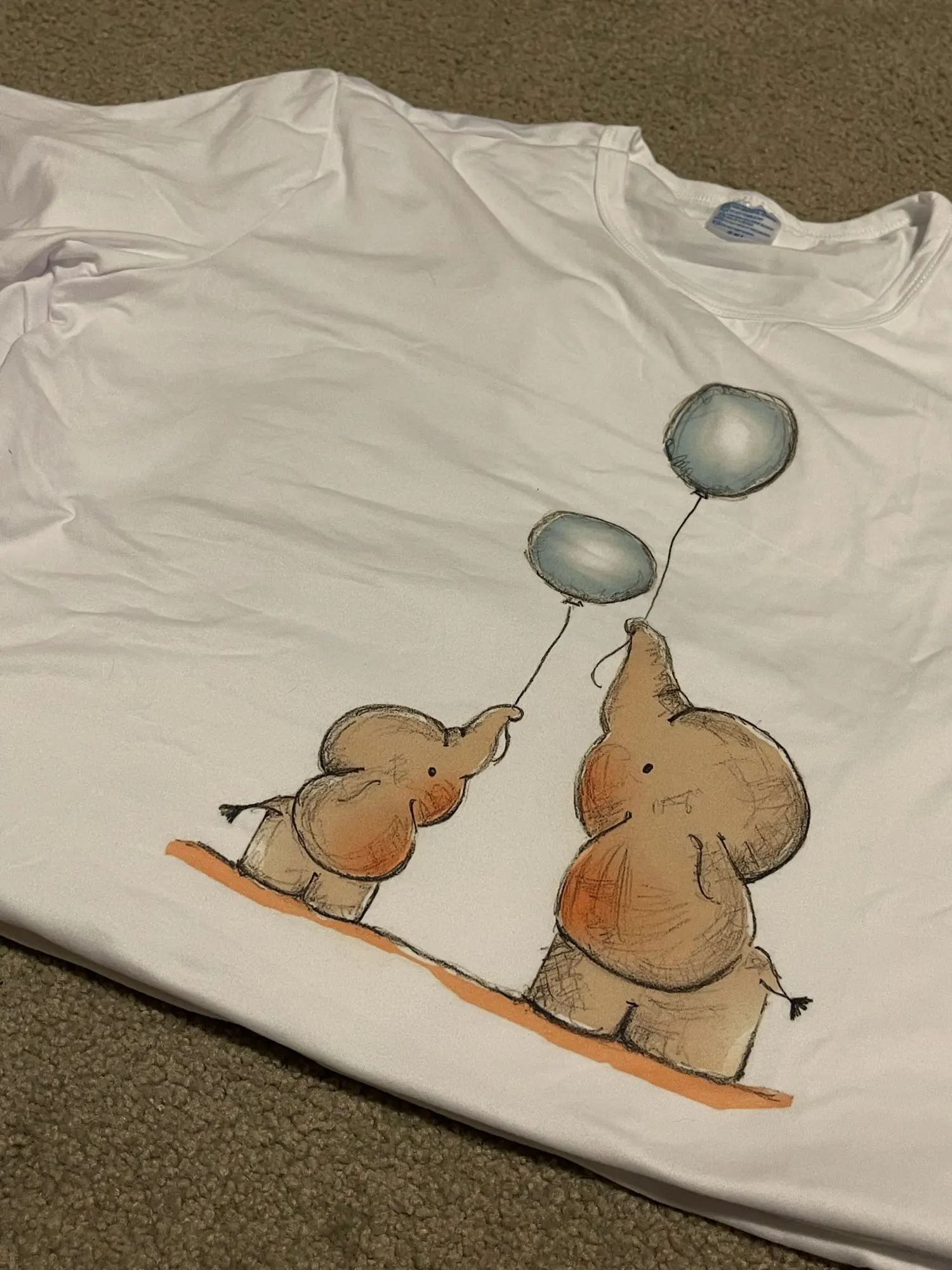 Очень милая красивая футболка, изготовленная из мягкого материала. Тем не менее, слоны выглядят более коричневыми и оранжевыми, чем серые.. Но спасибо продавцу за быстрое обслуживание, доставку и удовлетворение x