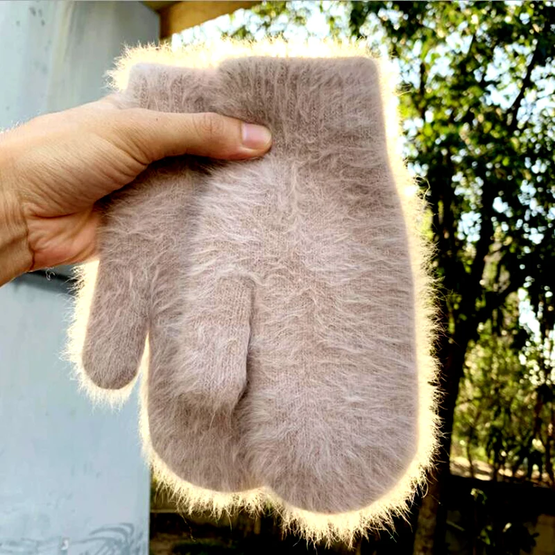 Новые модные женские короткие теплые зимние перчатки из кроличьей шерсти, женские зимние варежки, меховые перчатки, милые варежки для девочек