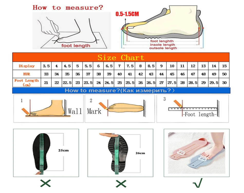 1. Американский размер или европейский размер могут отличаться от вашей страны, пожалуйста, выберите размер только в соответствии с длиной Вашей стопы.