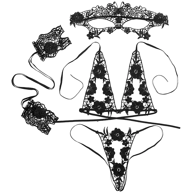 Комплект женского эротического нижнего белья из 4 предметов, маска ...