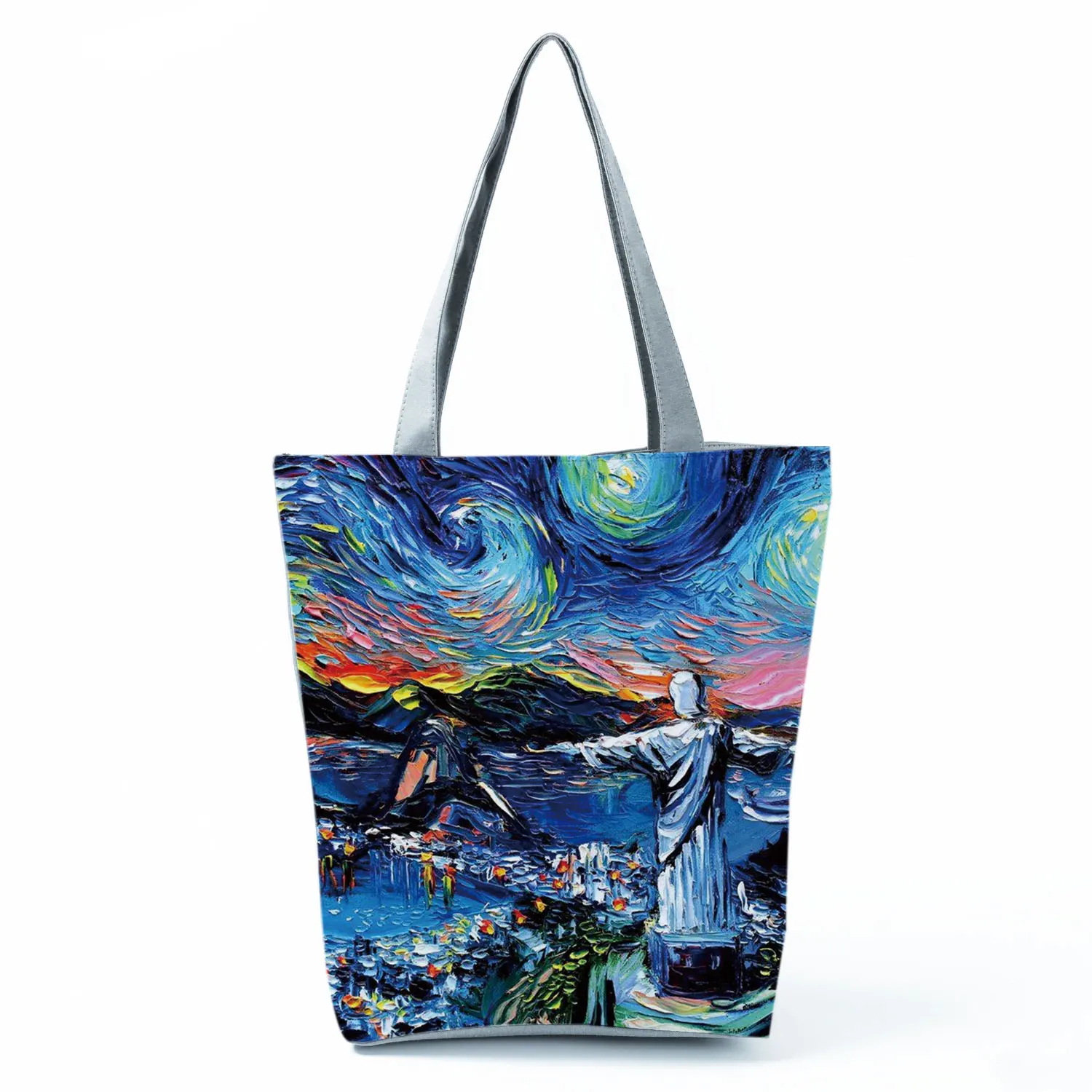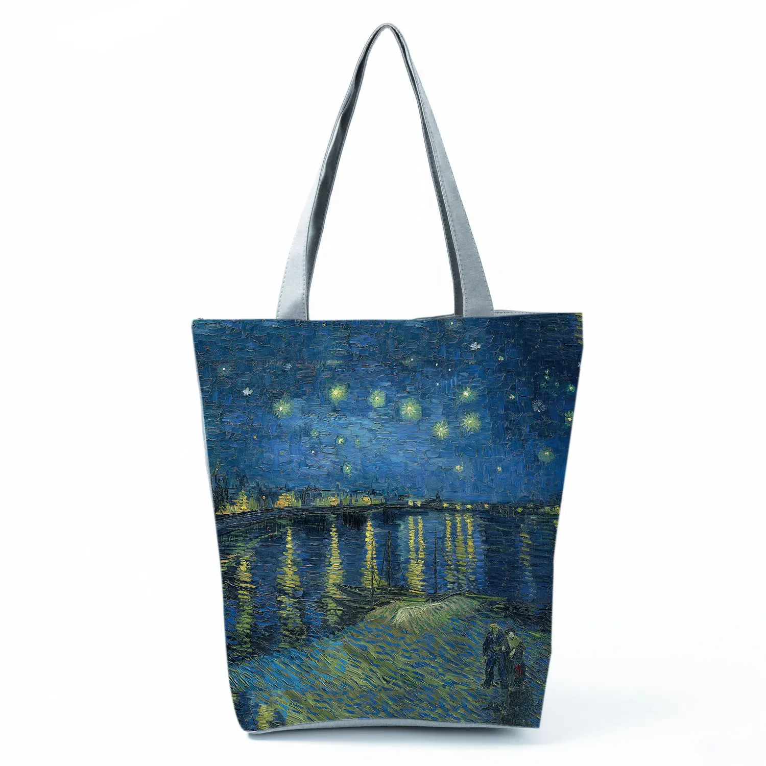 Новая сумка-тоут с масляной росписью Ван Гога в стиле ретро, модная пляжная сумка для женщин, для отдыха, эко-шоппинга, высокое качество, складная сумка на плечо