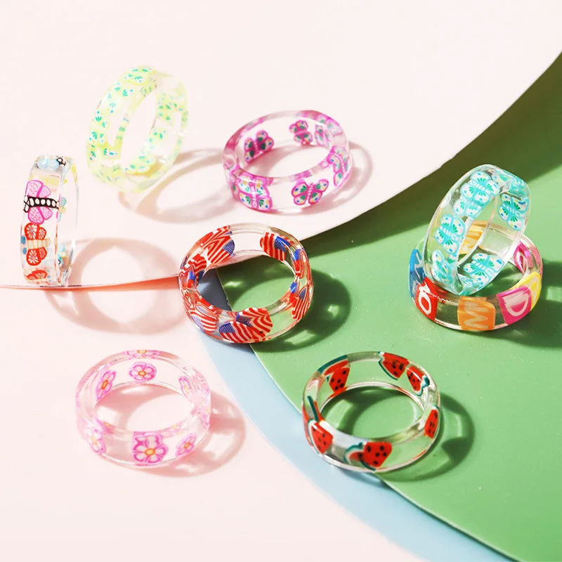 Новые корейские модные кольца в виде свежих фруктов, прозрачное акриловое кольцо из смолы для женщин и девушек, новый дизайн, ювелирные изделия на палец с клубничным лимоном