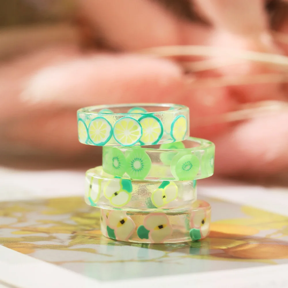 Кольцо женское, летнее акриловое, разноцветное, фрукты из смолы