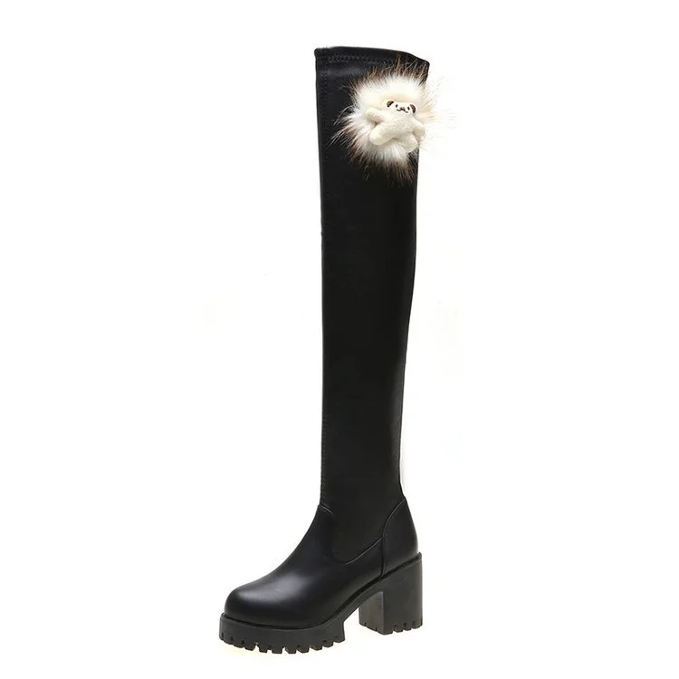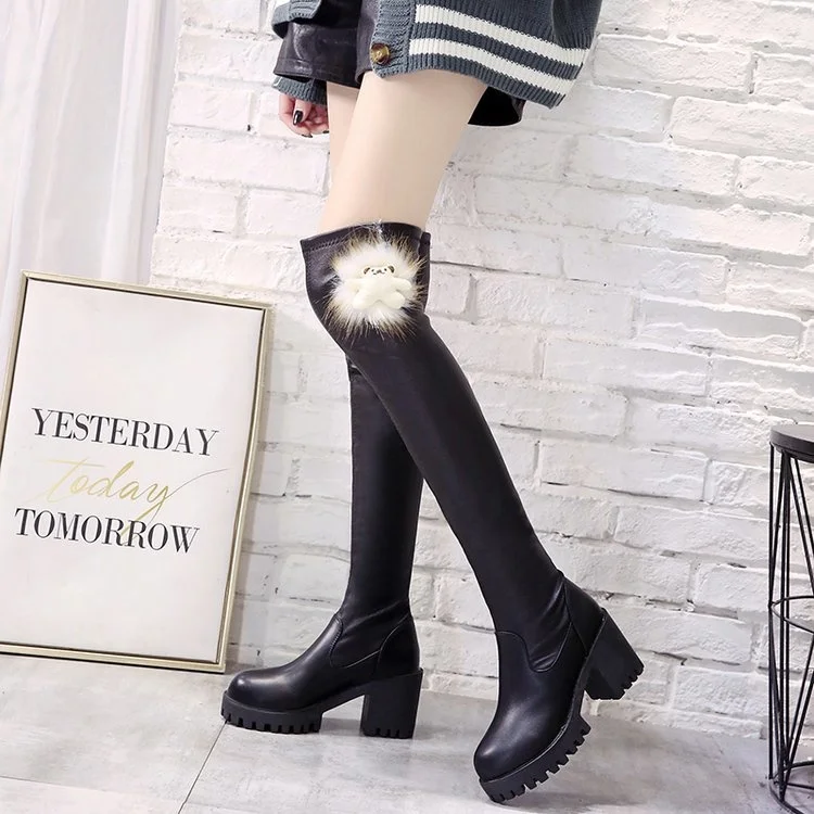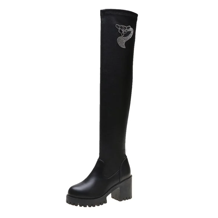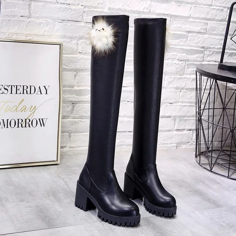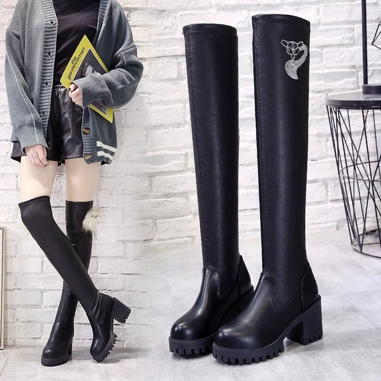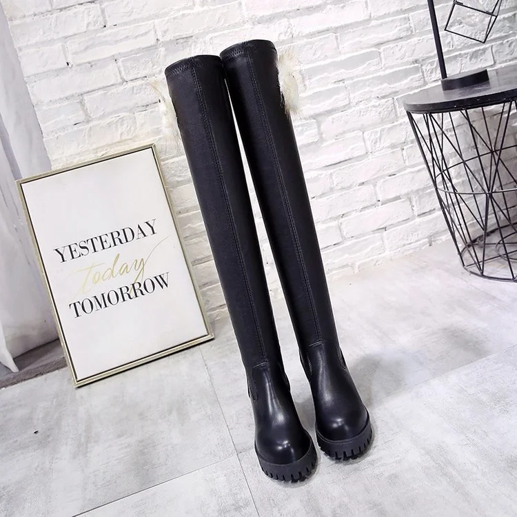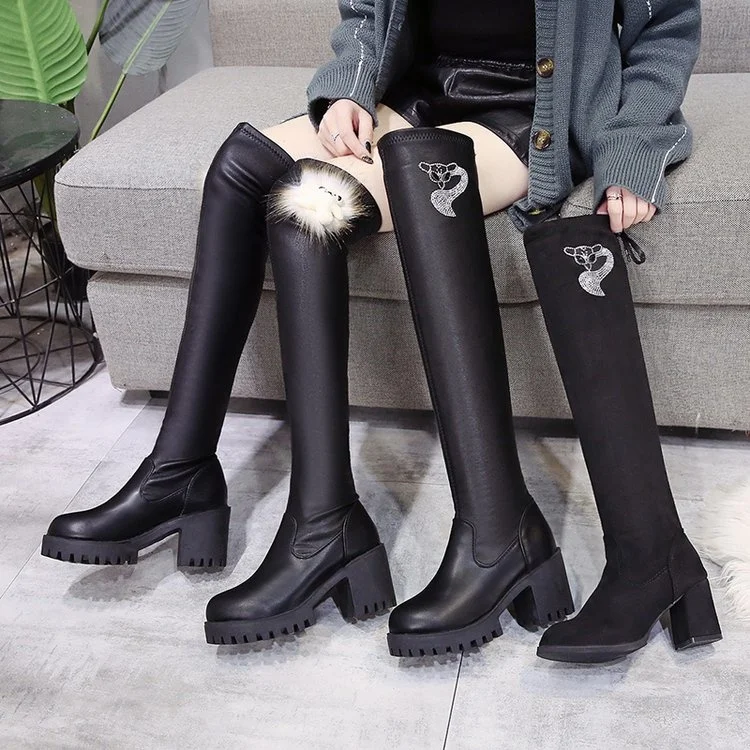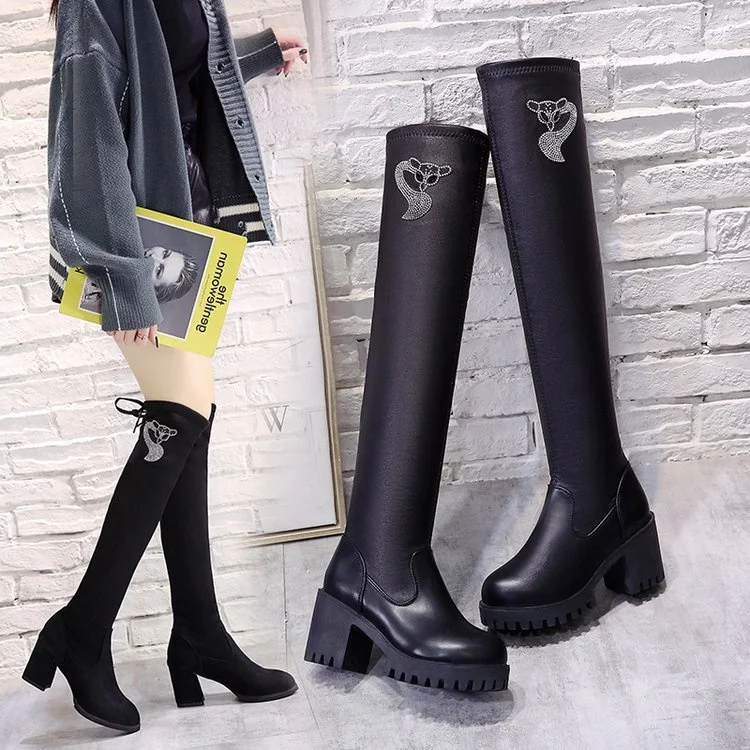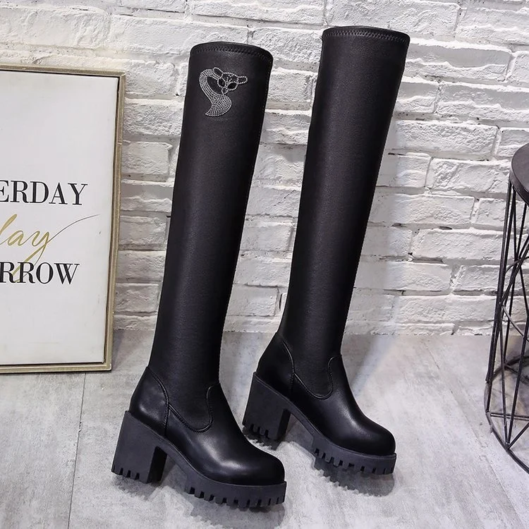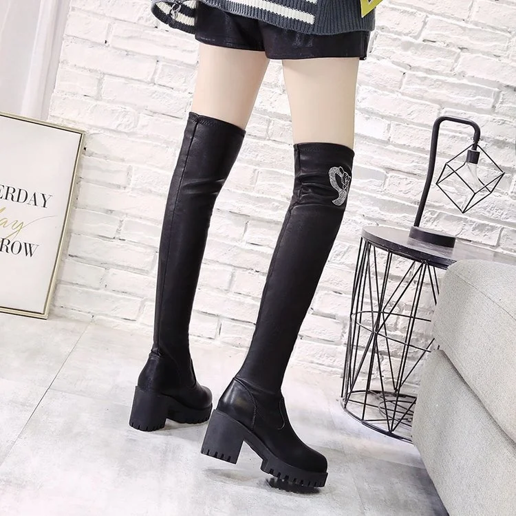 Женские ботфорты из искусственной кожи, тонкие эластичные сапоги выше колена на низком среднем каблуке, на плоской подошве, 2021