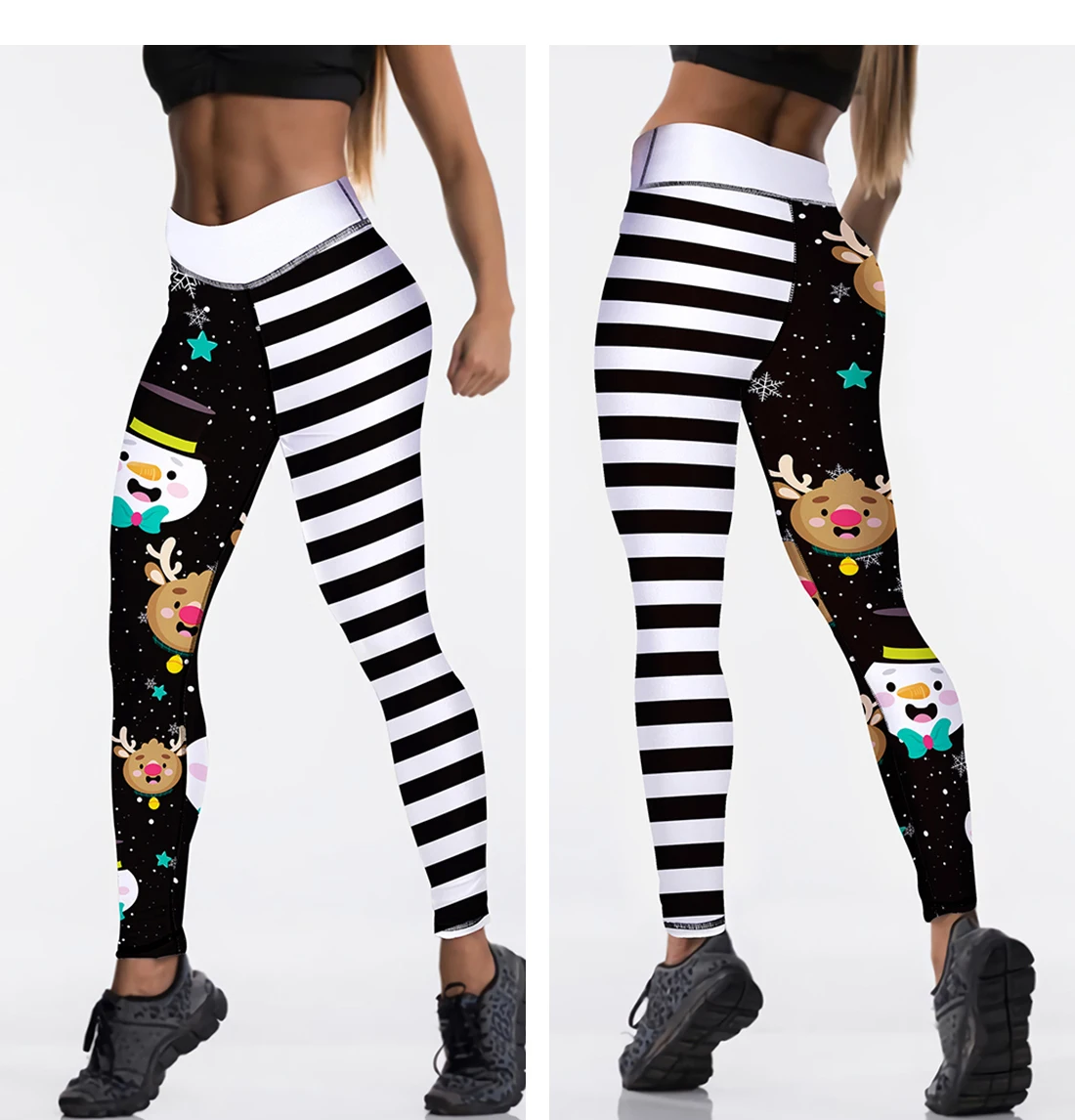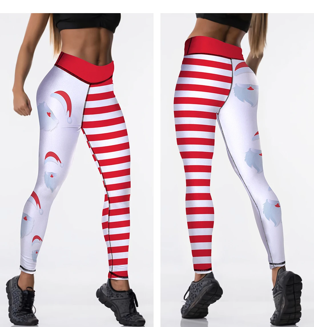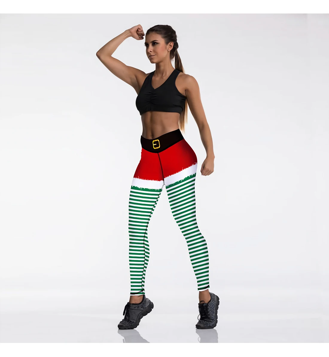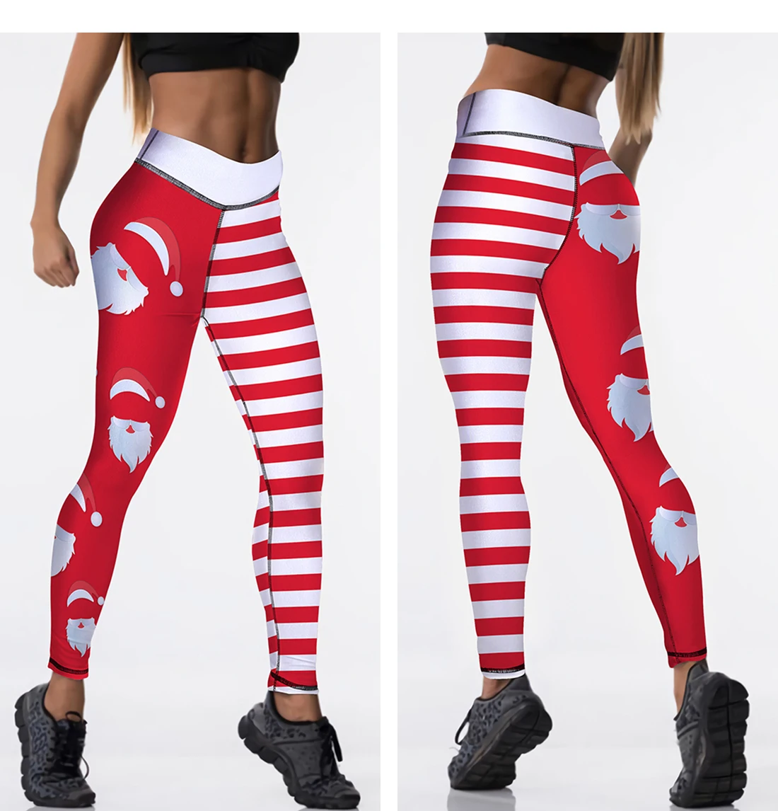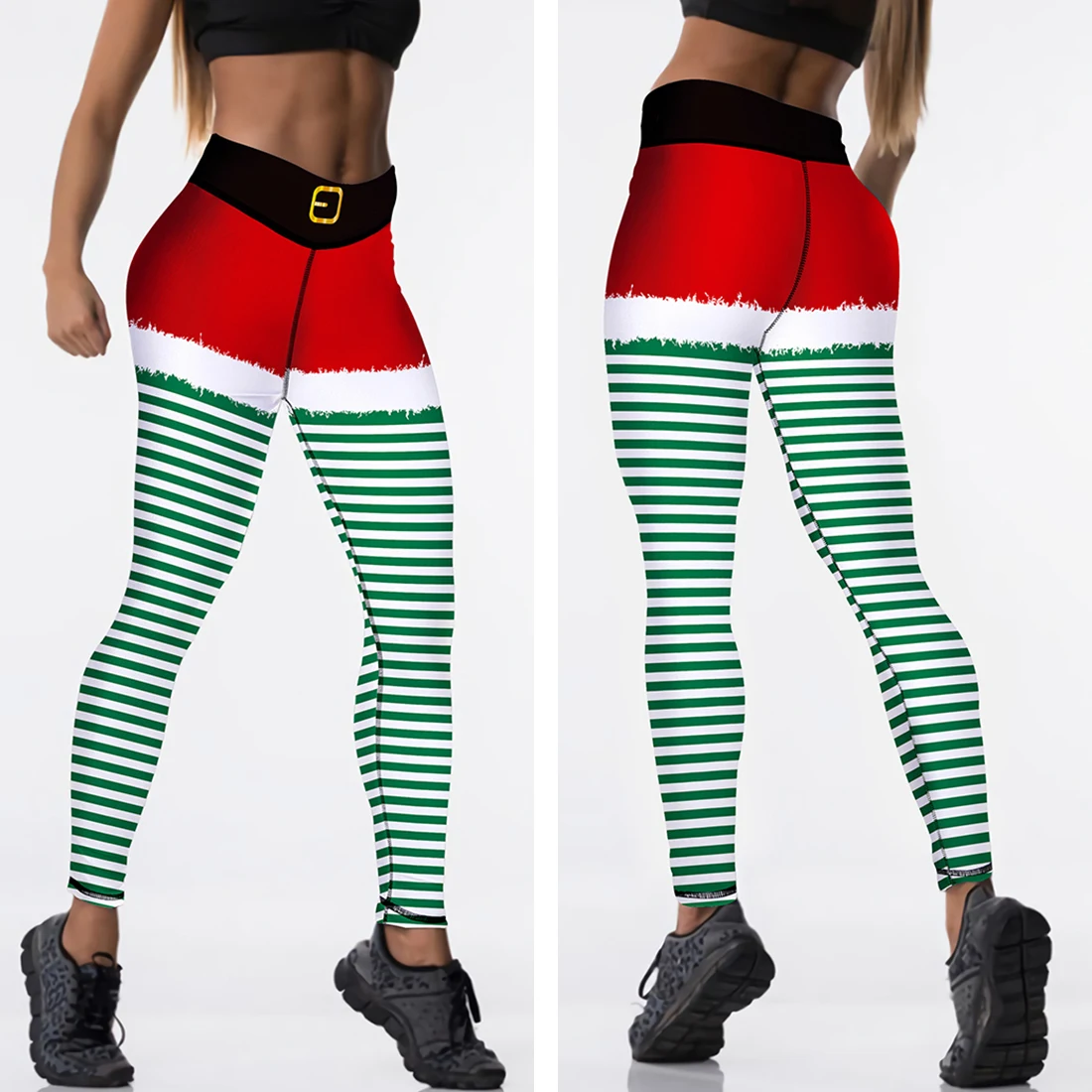 Модные рождественские леггинсы, подарок, осенне-зимние праздничные леггинсы, женские Сексуальные облегающие леггинсы в полоску с высокой талией и 3D рисунком