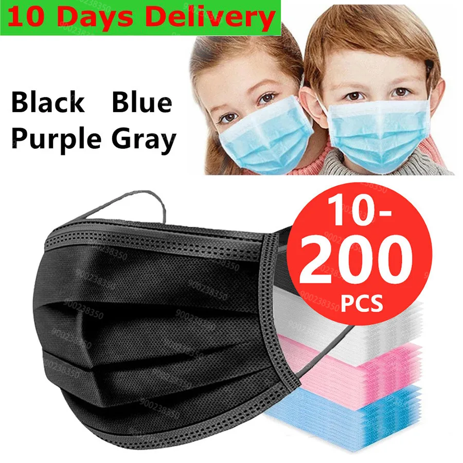 10-200 шт. маска одноразовая маска для лица Черный Nonwove 3 Слои м...