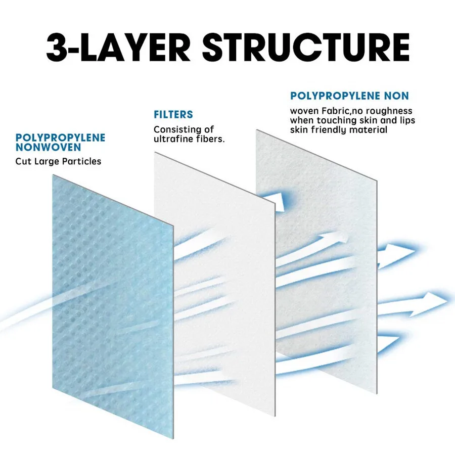 Маска Защитная 3-слойная для лица, мягкая дышащая маска для лица, 5...