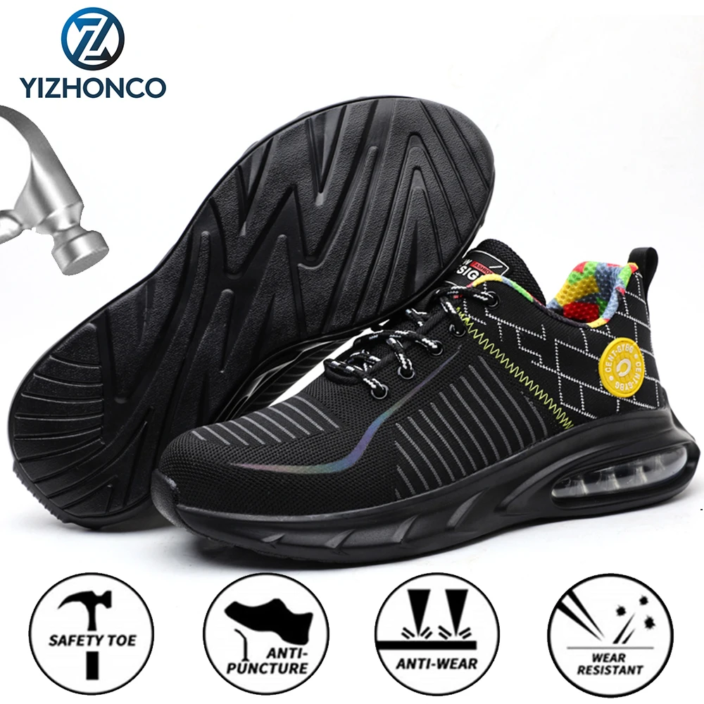 Осенняя защитная обувь с подушкой, мужские ботинки, модные рабочие кроссовки, обувь со стальным носком, непробиваемые рабочие ботинки, защитная обувь YIZHONCO