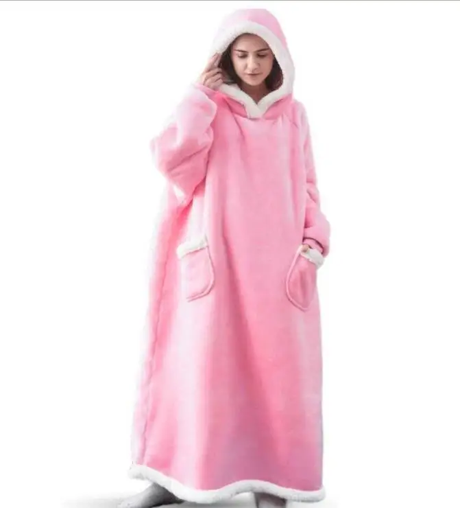 Супердлинное фланелевое одеяло Luzuzi с рукавами, Зимние толстовки,...