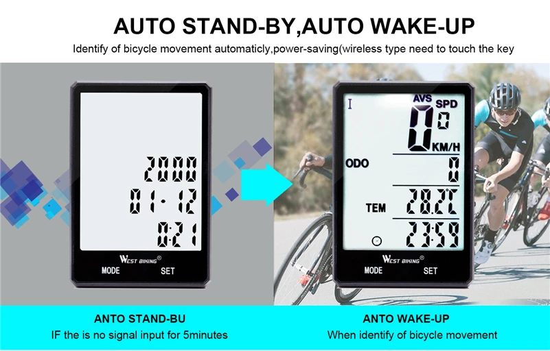 WEST BIKING 4 Тип велокомпьютер 2,8 "спидометр одометр спидометр непромокаемые Велоспорт велосипед измеряемая Температура секундомер компьютер для велосипеда