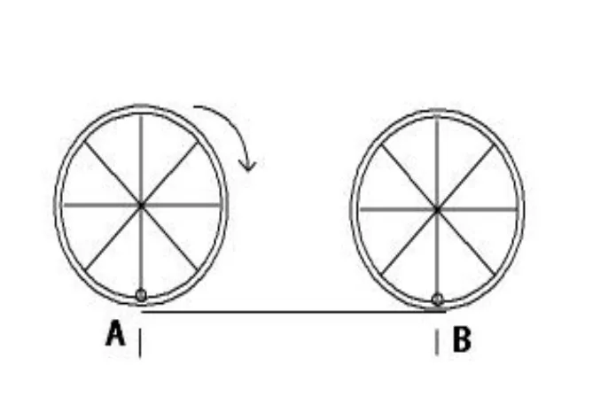 Затем, пожалуйста, отметьте, что колеса бегут, как только газ намордится внизу. И измерьте расстояние между двумя отметками, вы можете получить периметр колеса.