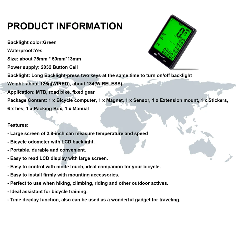 Bicycle Computer FeaturesLarge screen, multi-function, waterproof, strong installation