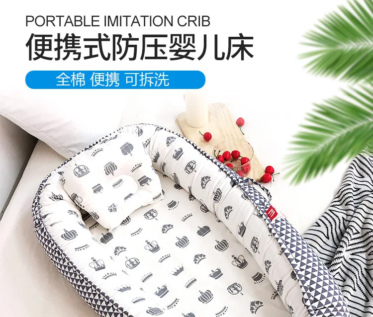 Портативная детская кровать 85*50 безопасное детское гнездо из хлоп...