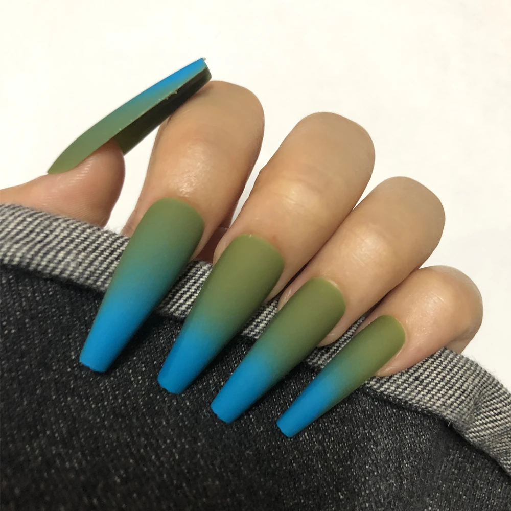 Матовые градиентные накладные ногти с полным покрытием, накладные ногти в стиле балерины, модные матовые накладные ногти карамельного цвета, 20 шт.компл.