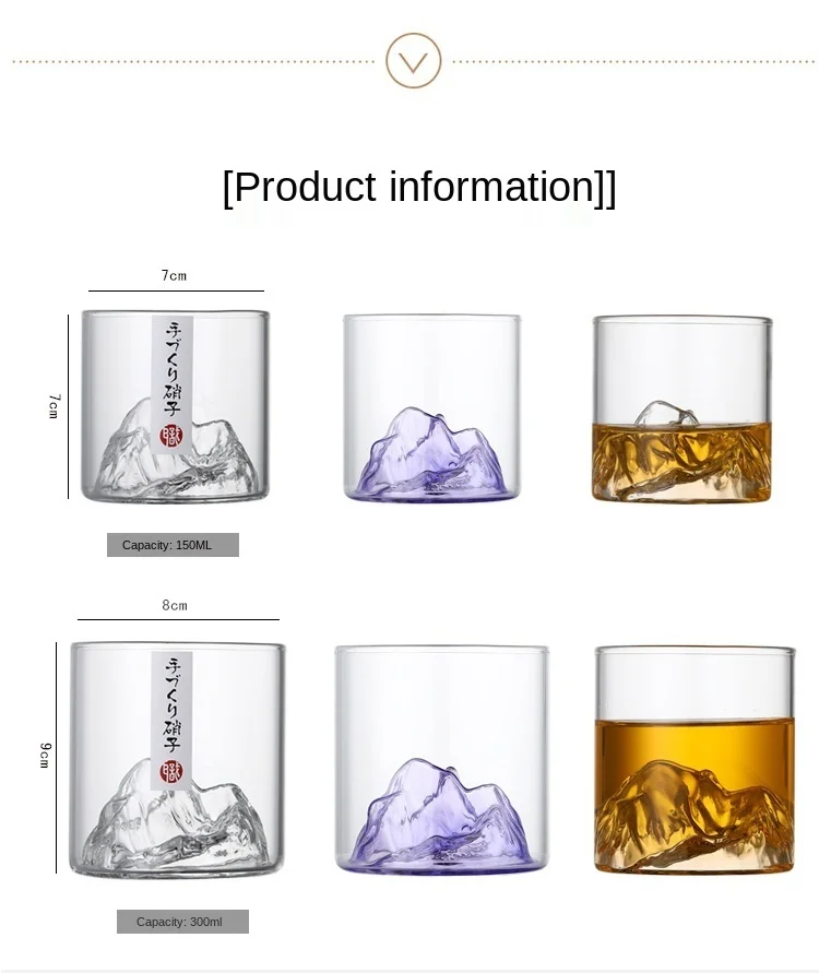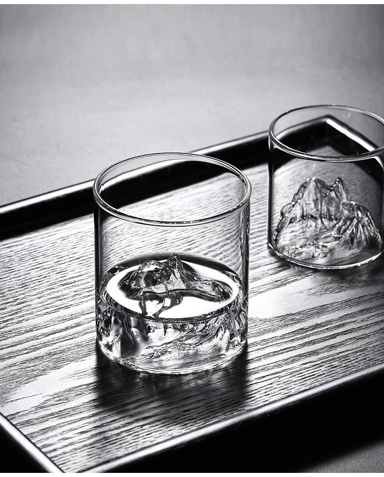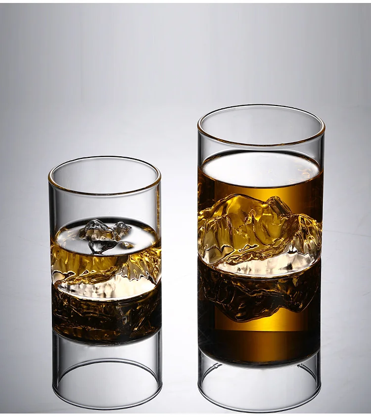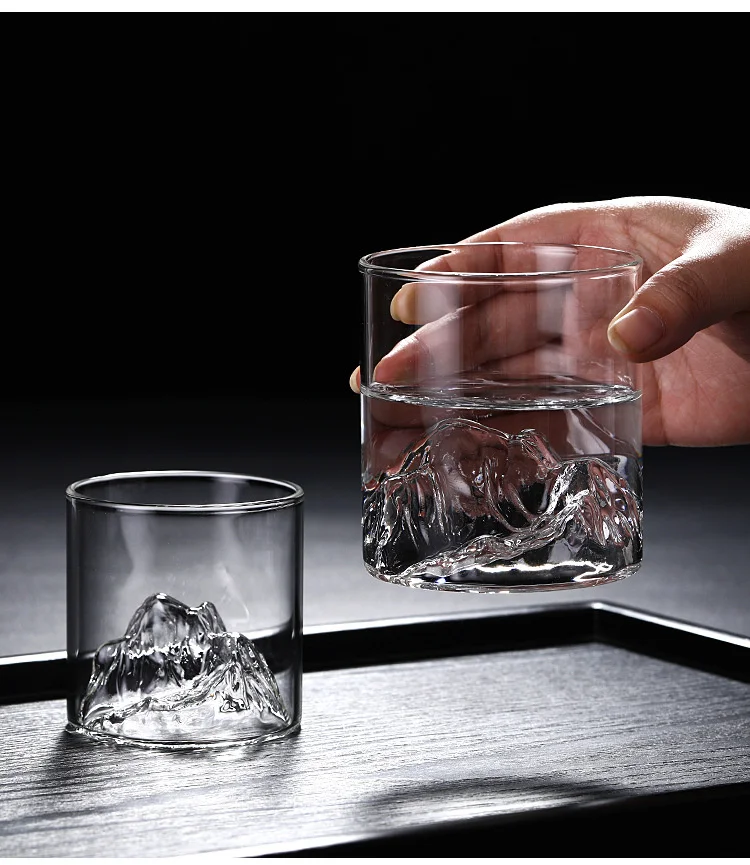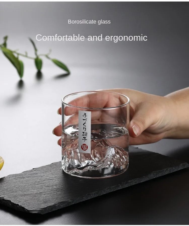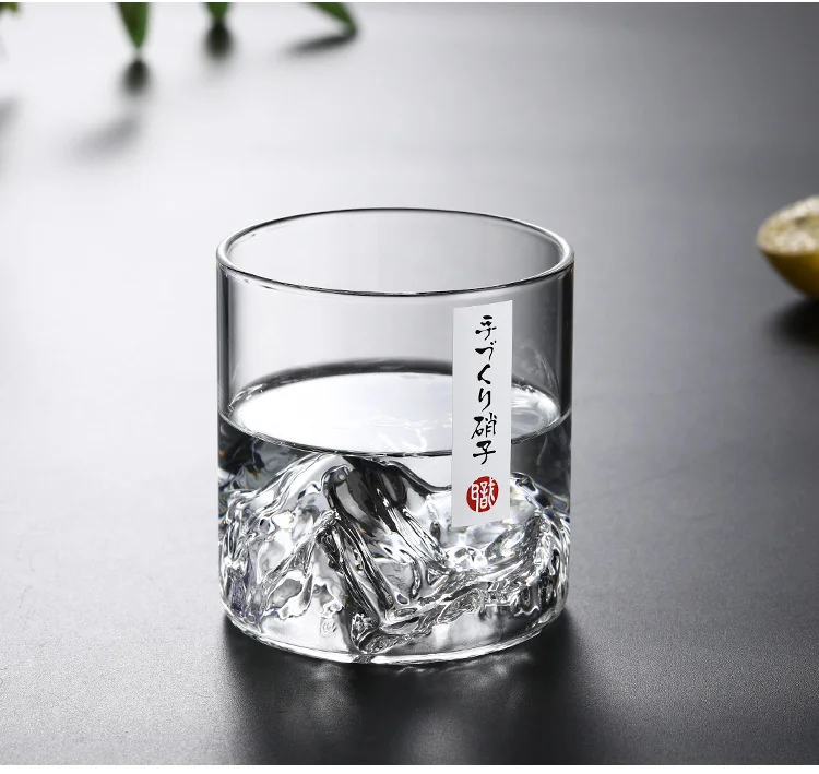Чашка для виски в японском стиле, прозрачная стеклянная чашка неглубокой формы в виде горы, Fuji, бокал для виски, ледника, водки, вина