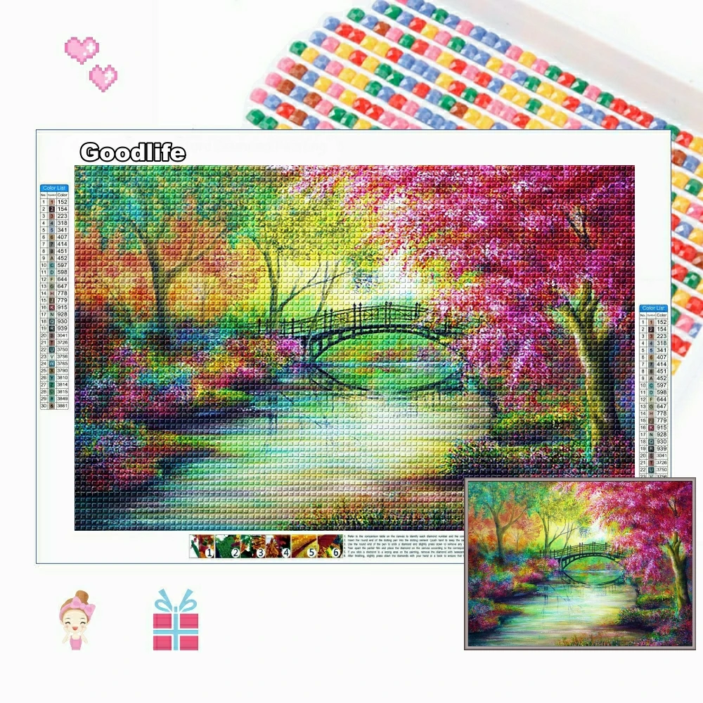 Алмазная живопись, фантазийный пейзаж, полноразмернаякруглая вышивк...