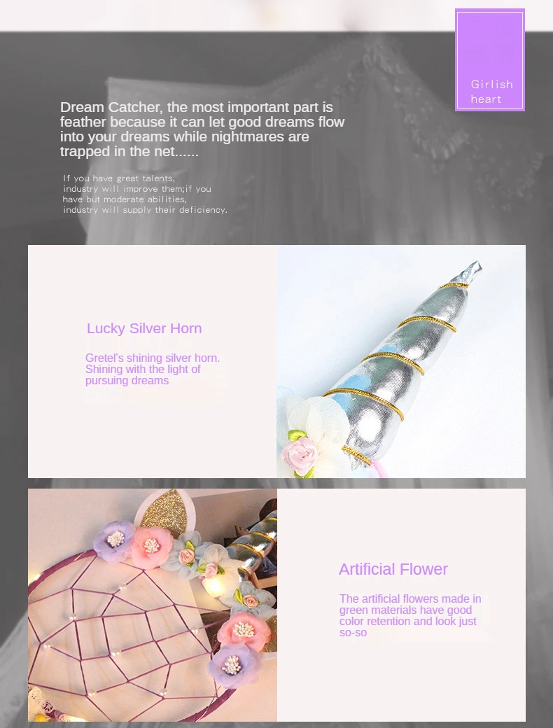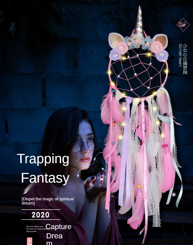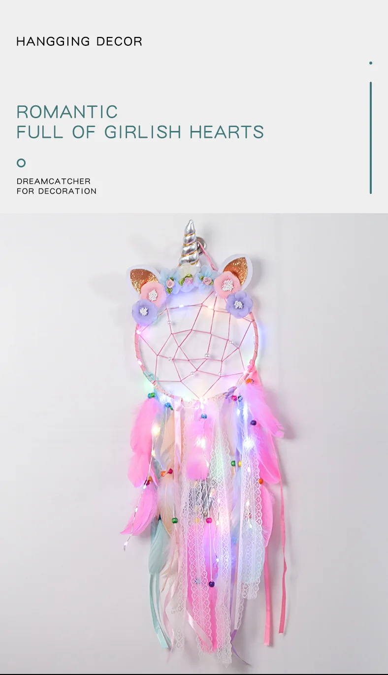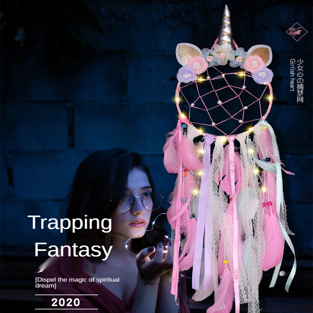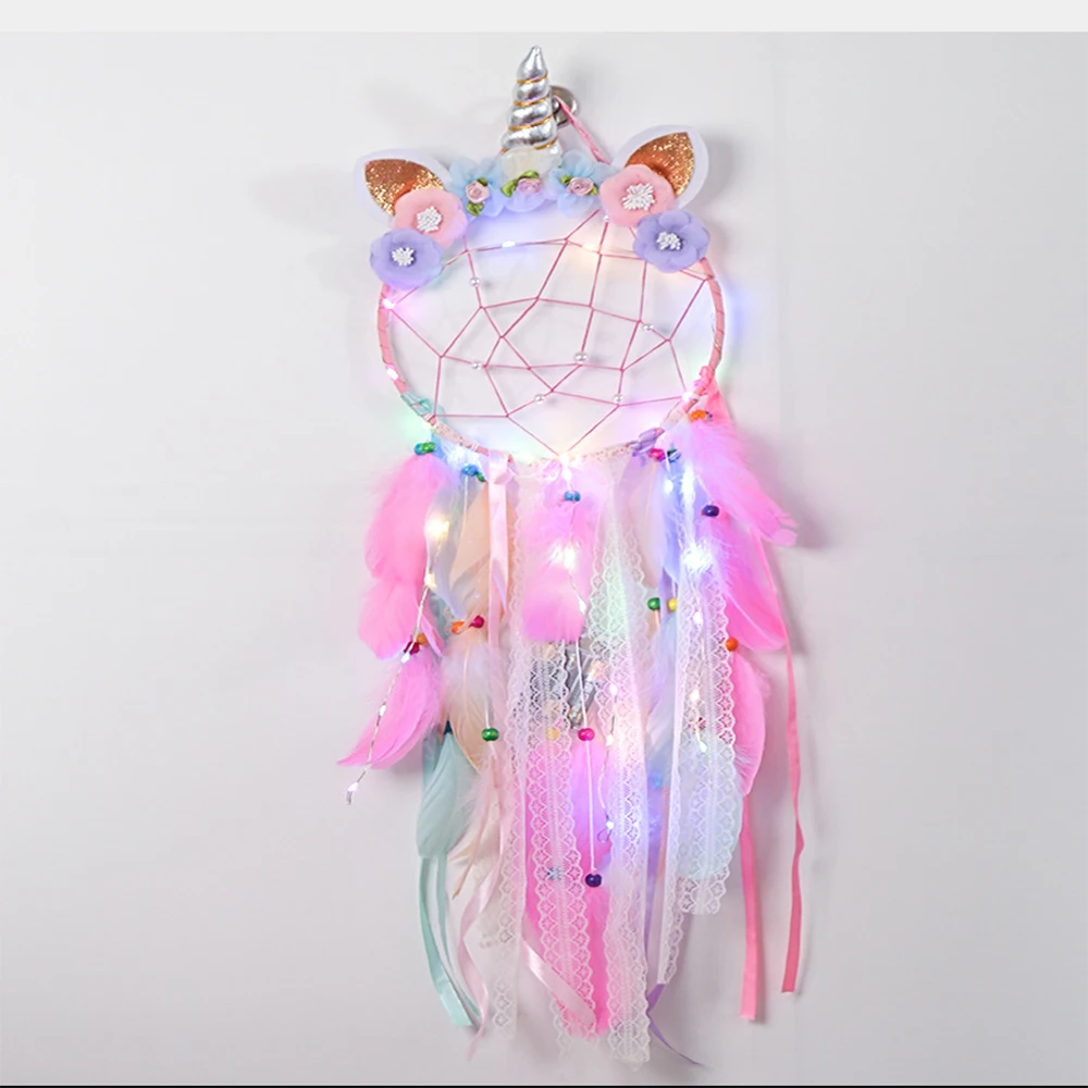Милый светодиодный ночник в стиле ins, единорог, Ловец снов, декор для комнаты, Рождественское украшение, домашний декор, настенный подвесной светильник для девочек, подарок для спальни