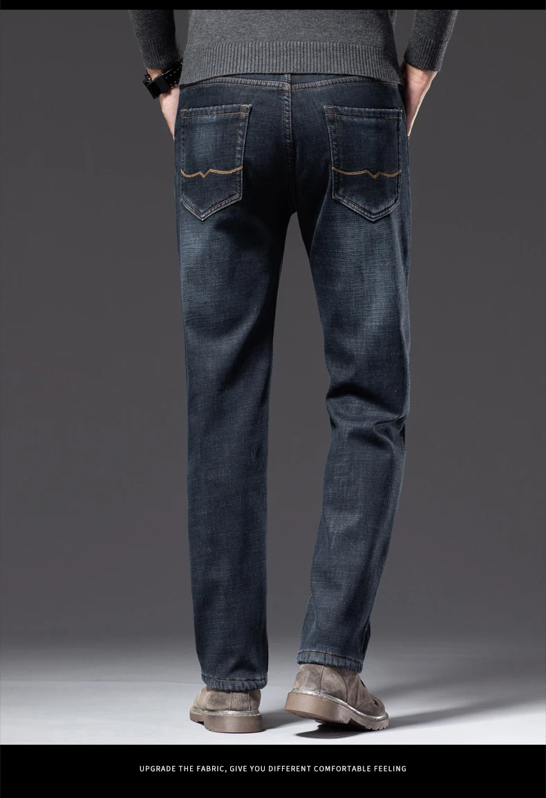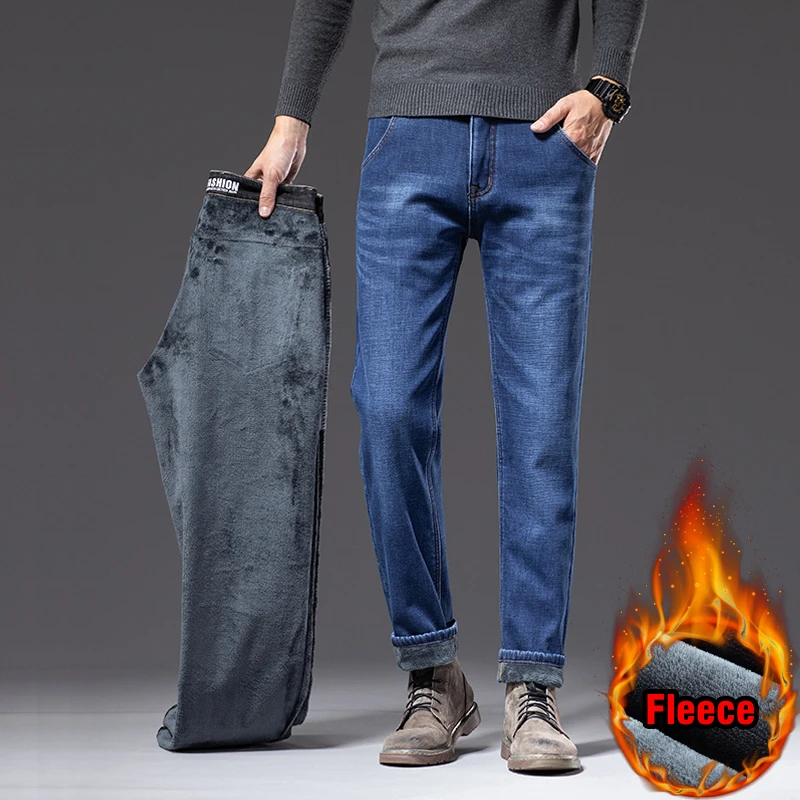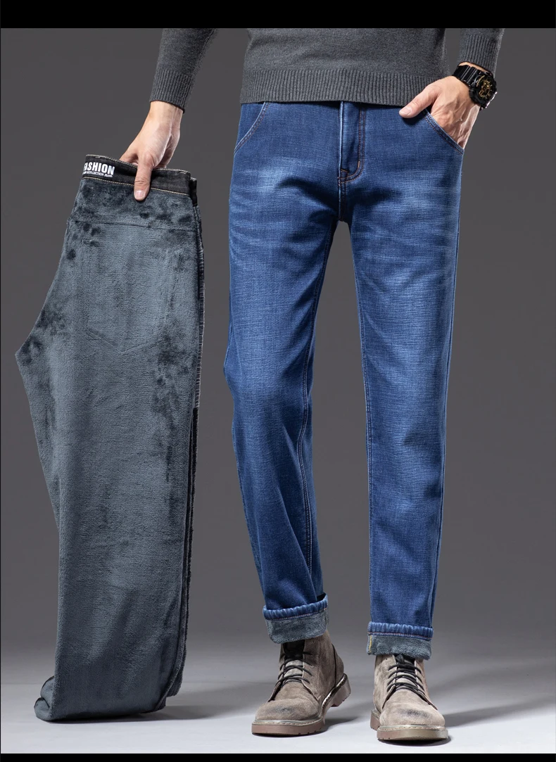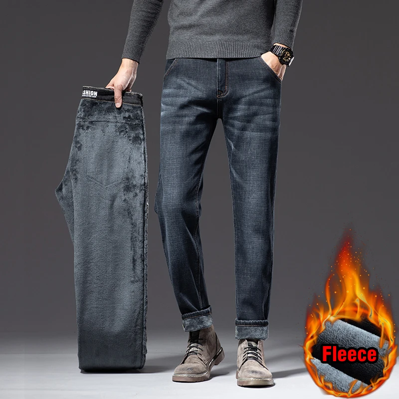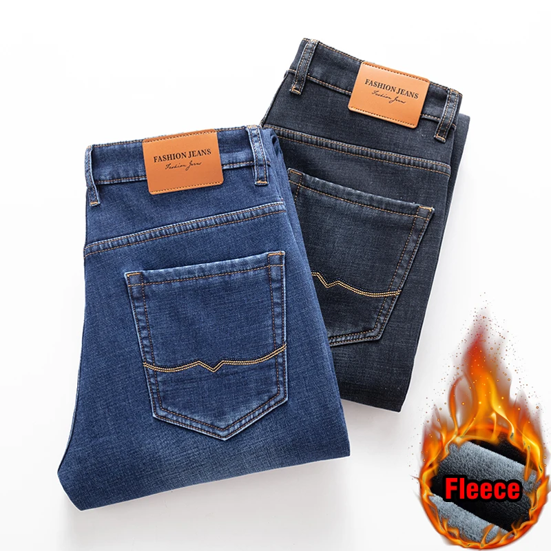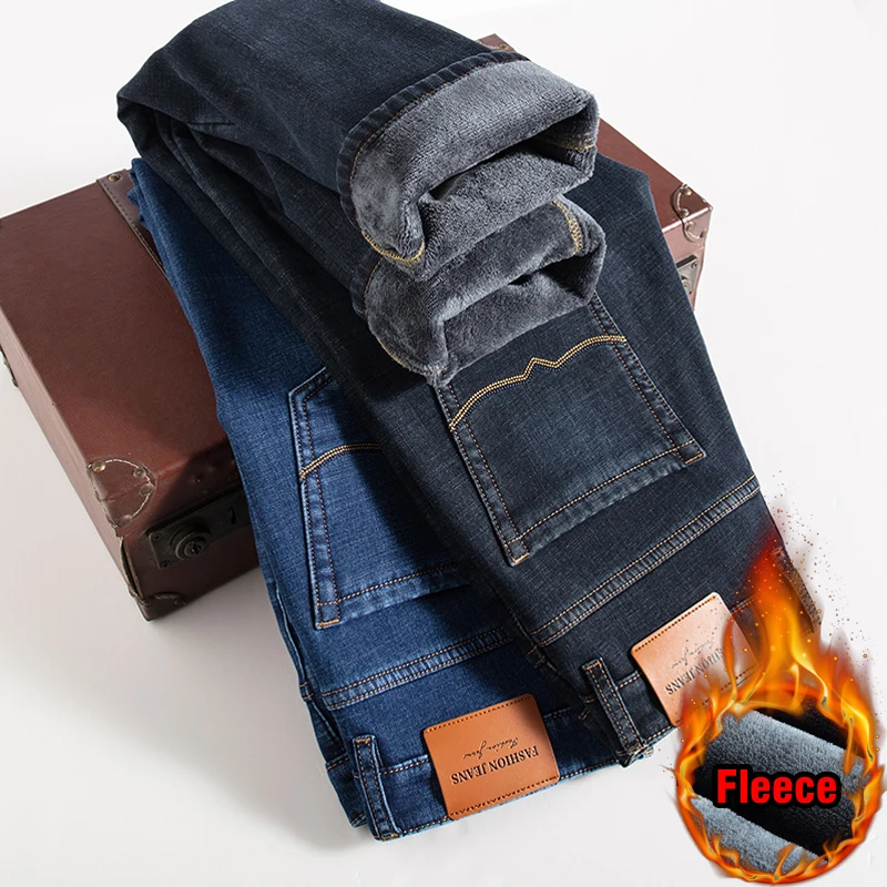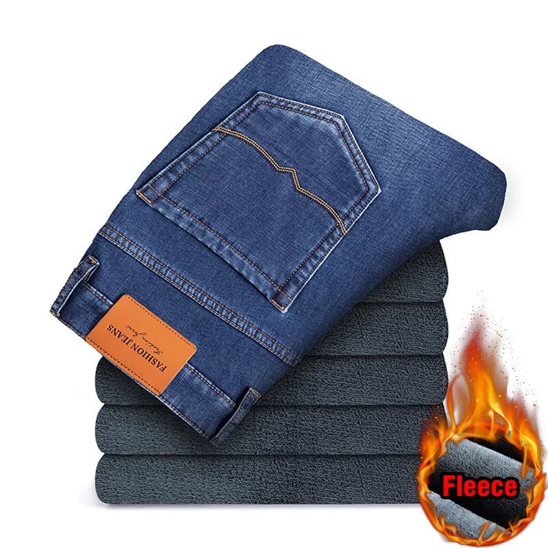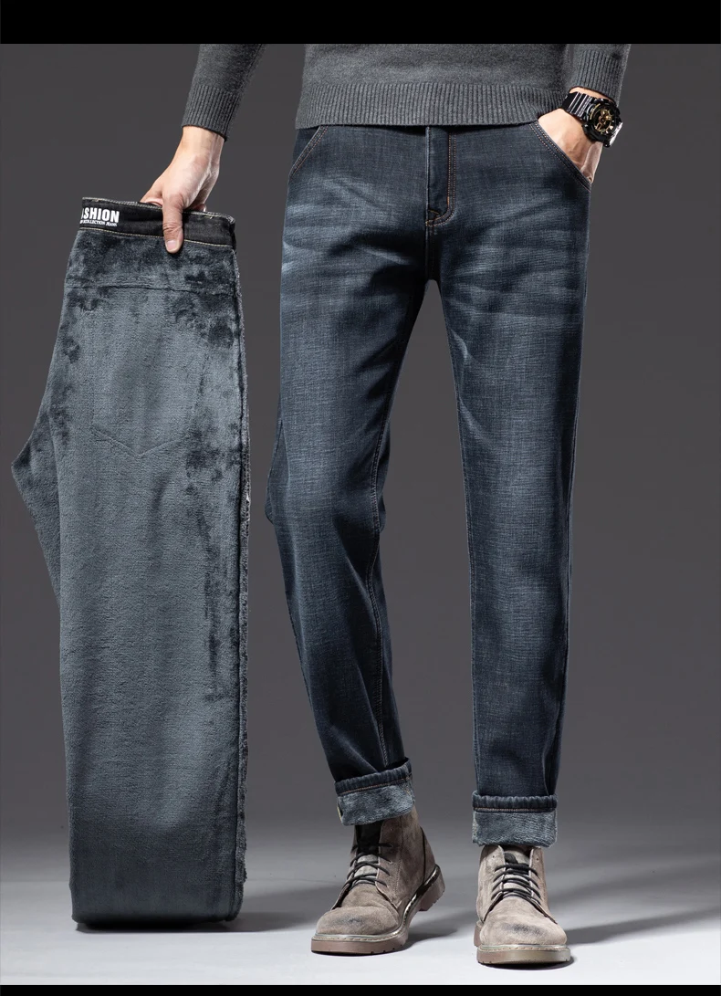 Зимние мужские бизнес плюс вельветовые джинсы классический стиль обычный крой флис толстые теплые джинсовые брюки мужские Брендовые брюки черный синий