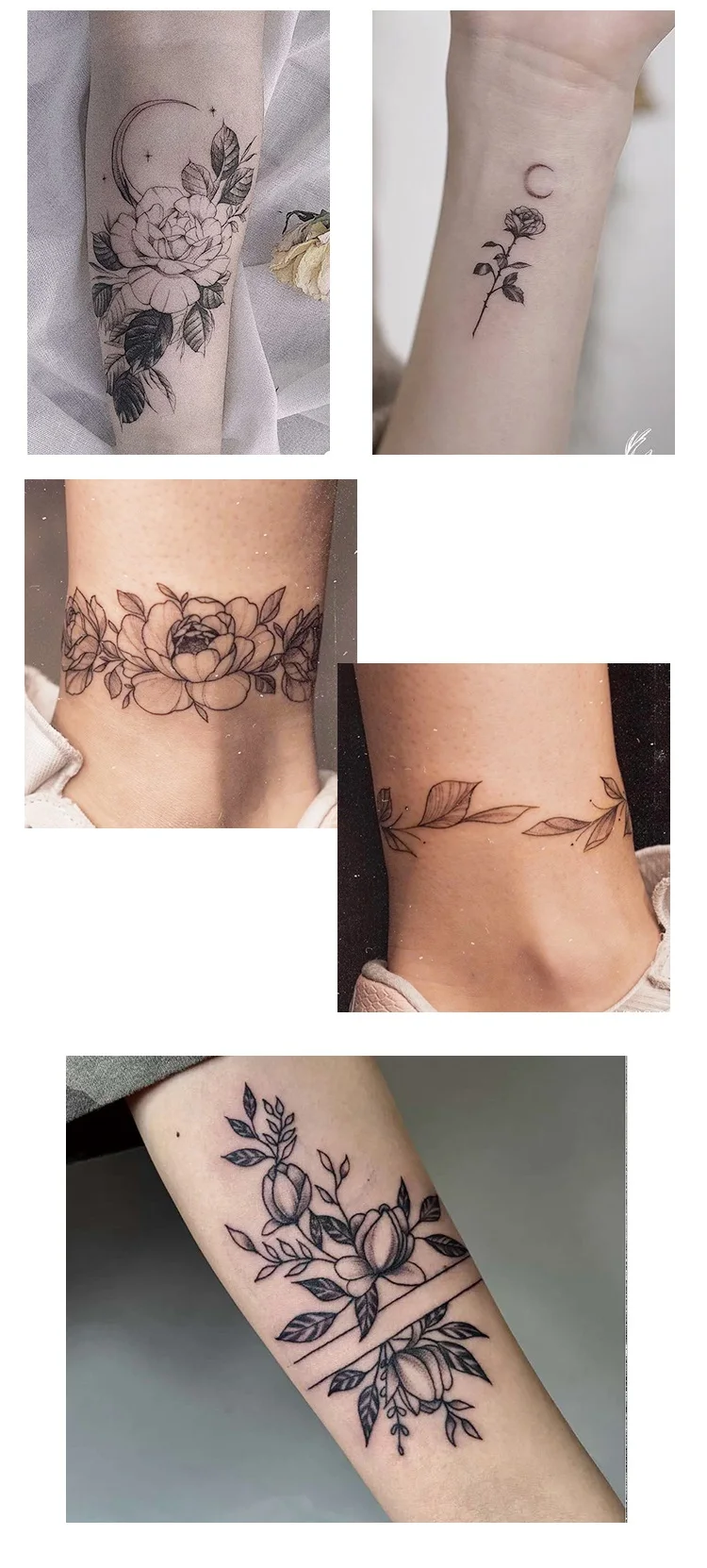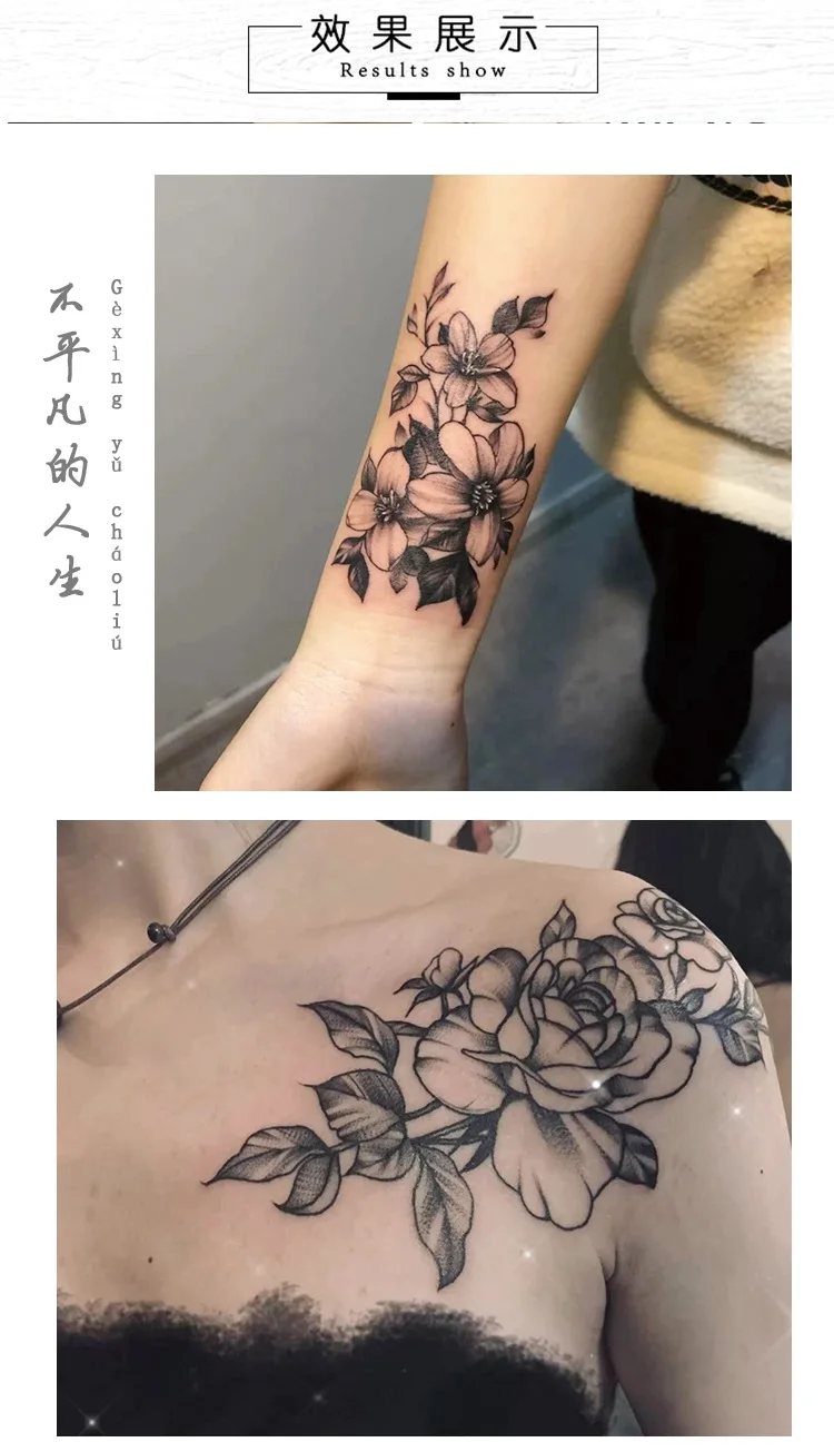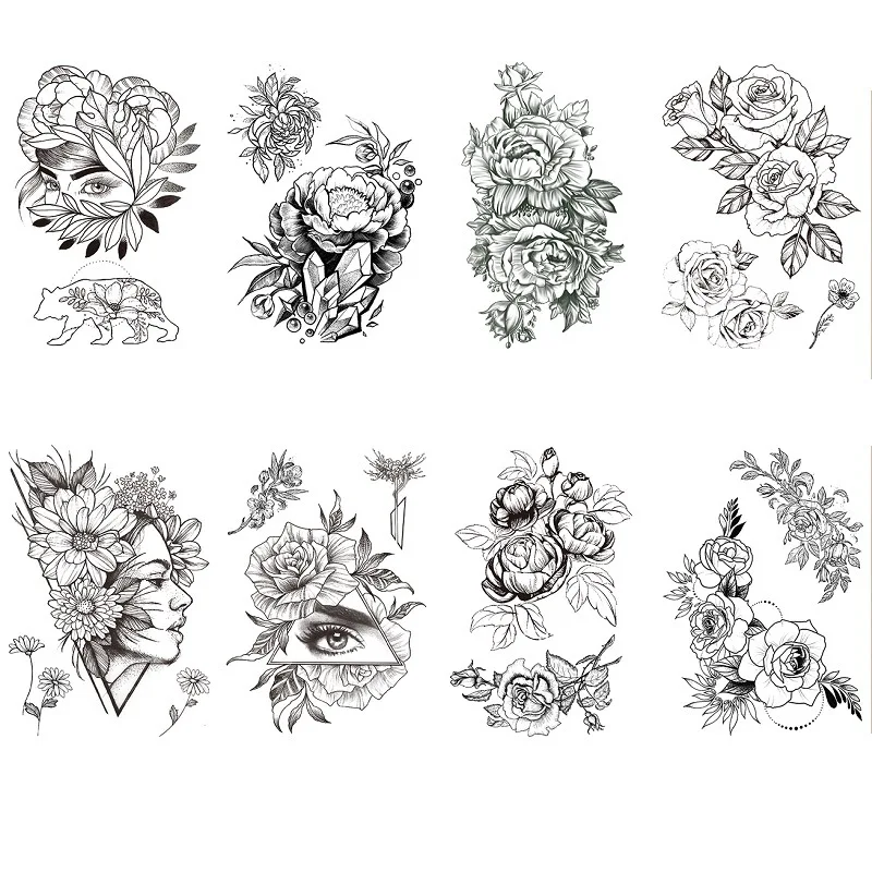 Сексуальные цветочные водостойкие Временные татуировки для женский боди-арт живопись руки ноги татуировки наклейки реалистичные поддельные черные татуировки розы