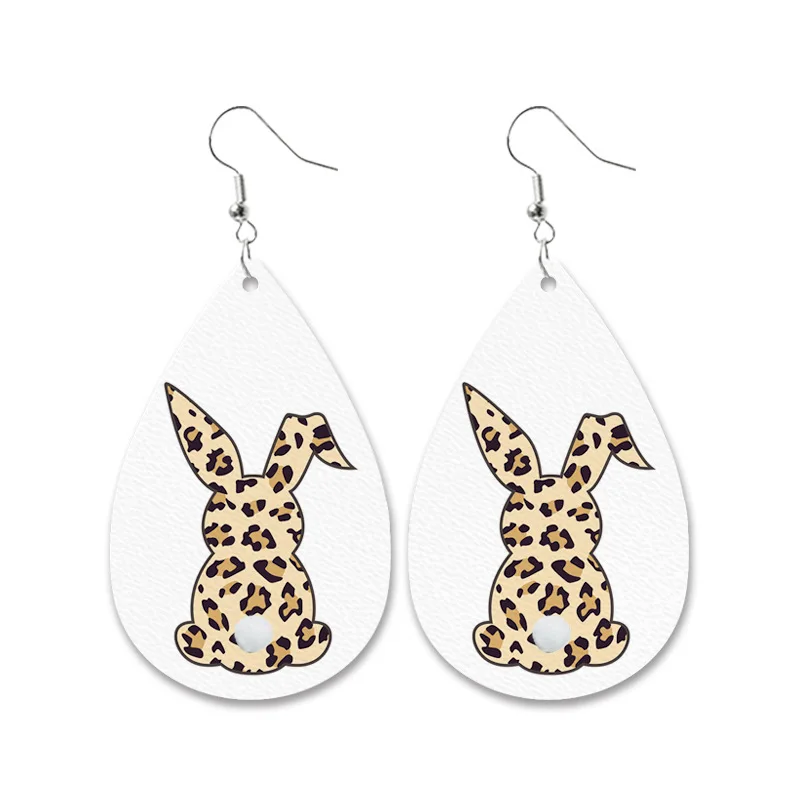 Пасхальные кожаные серьги в виде кролика с леопардовым принтом, черно-белые решетчатые серьги на колесиках с морковкой, пасхальные серьги для женщин и девушек, подарок Ins