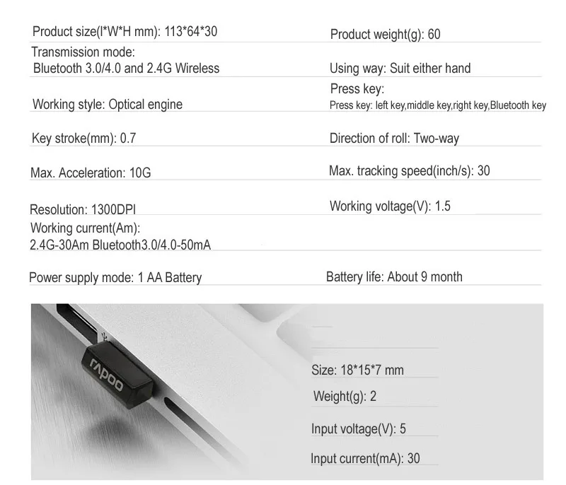 Беспроводная мышь Rapoo PLUS, многорежимная, Bluetooth 3,04,0 RT 2,...