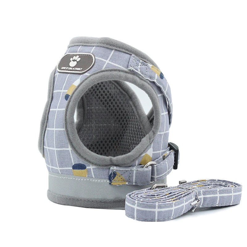 Маленькая собачья шлейка с поводком, набор из полиэстера и хлопка, светоотражающая, без тяги, поводок для домашних животных, ошейник для щенка, средняя и большая собака