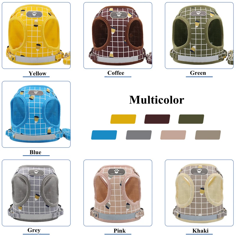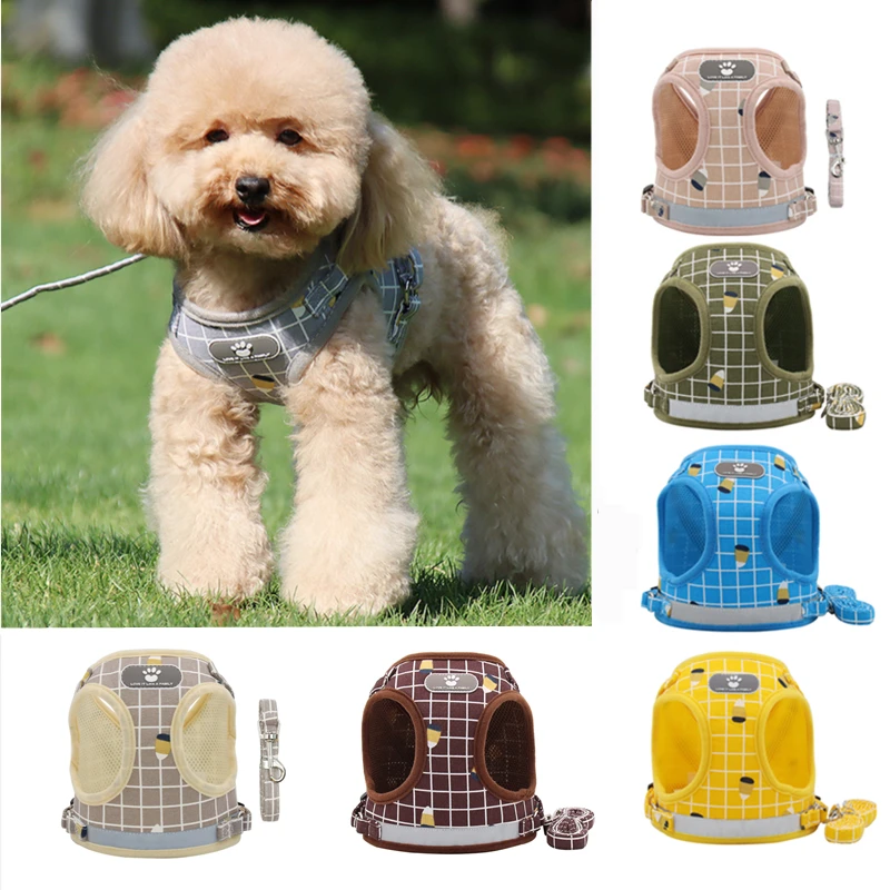 Комплект шлейка с поводком для маленьких собак, светоотражающий жилет из полиэстера и хлопка, не тянется, для прогулок с щенками, средних и больших размеров