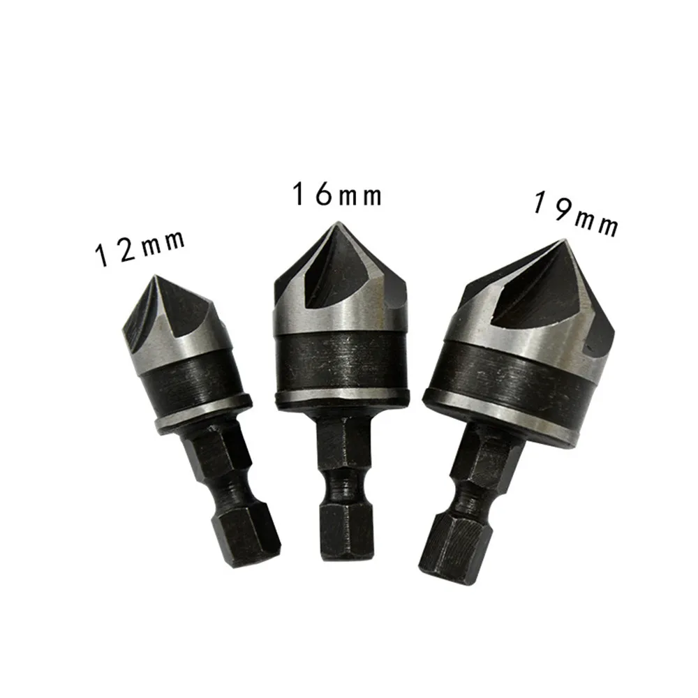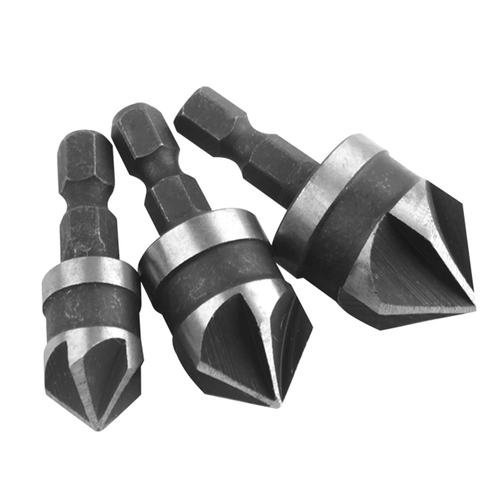 3 шт. сверла с зенкером из углеродистой стали с шестигранным хвостовиком, фаски для деревообработки