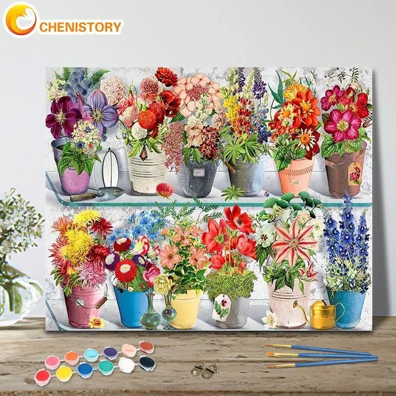 CHENISTORY краска по номерам, Горшечное растение для фотографирования на холсте, ручная краска, картины по номерам, цветы, домашний декор, масляное растение