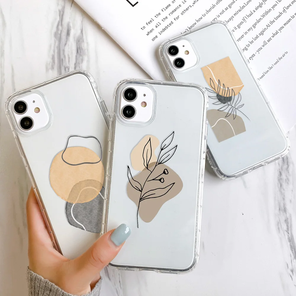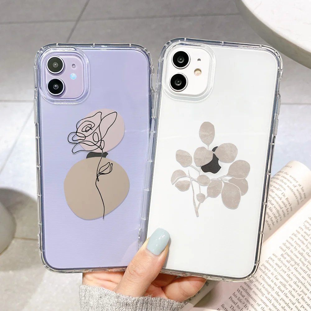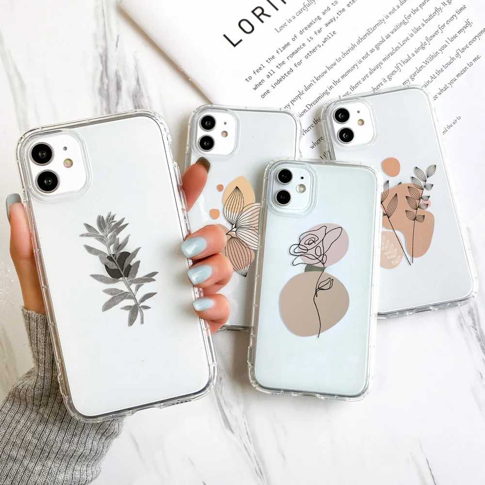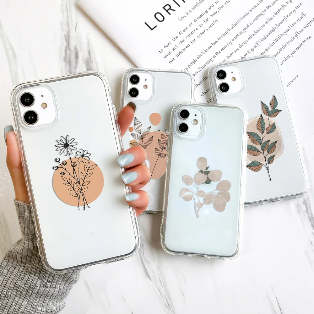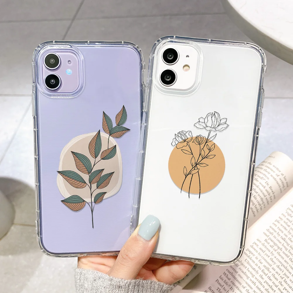 Чехол из ТПУ для Iphone 11, чехол для Iphone 12 Pro Max, чехол для Iphone 13 12 Mini X XR XS 6s 7 8 Plus SE 2020, милые прозрачные чехлы для телефонов с растениями