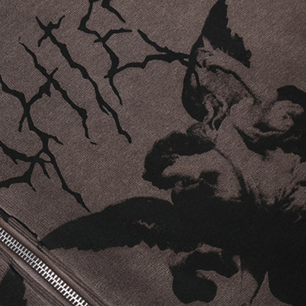 Женская винтажная толстовка с капюшоном и принтом ангела, в стиле Харадзюку