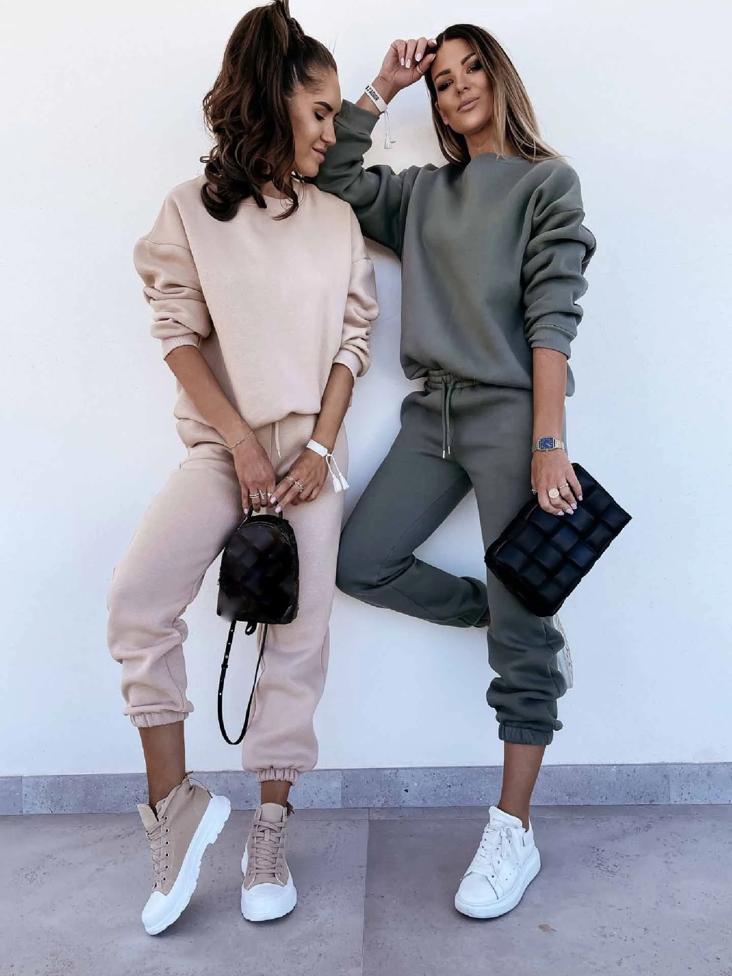 Женский осенне-зимний спортивный костюм, однотонный свитшот с длинн...