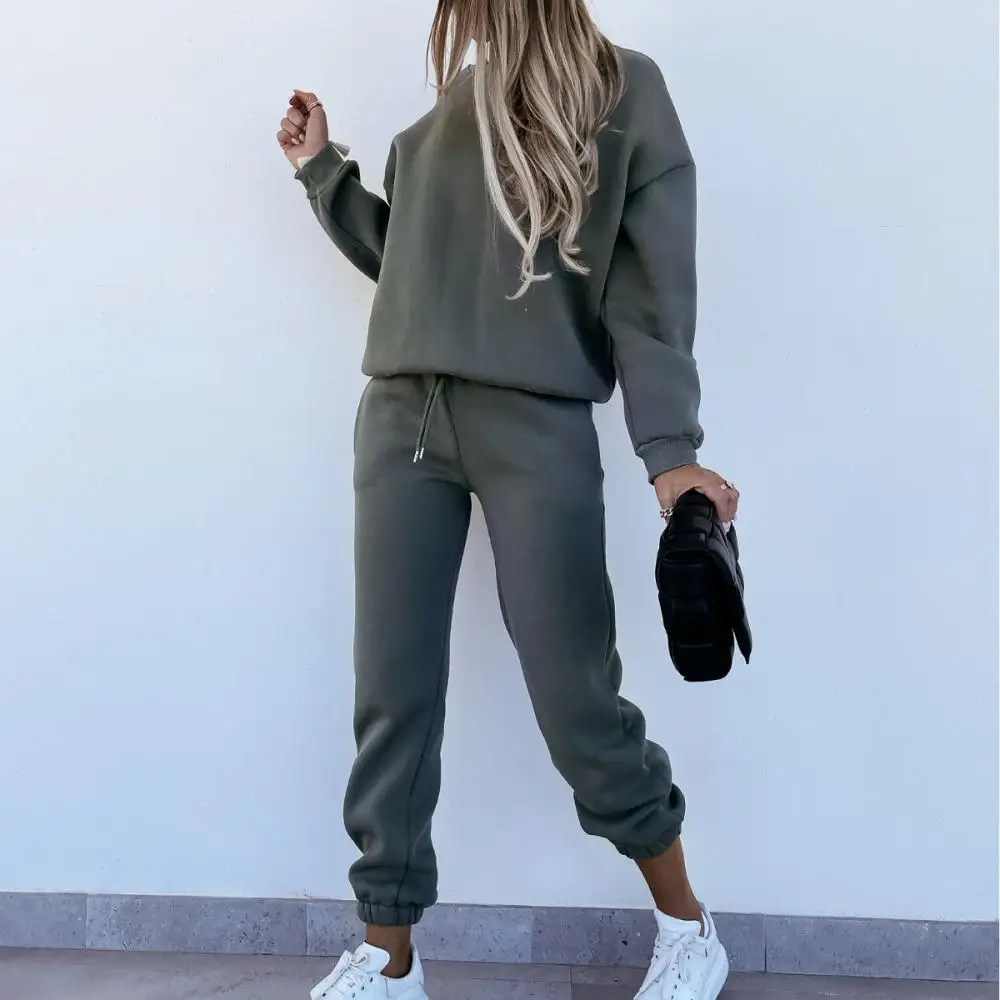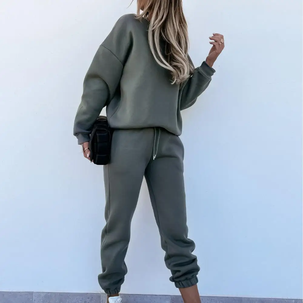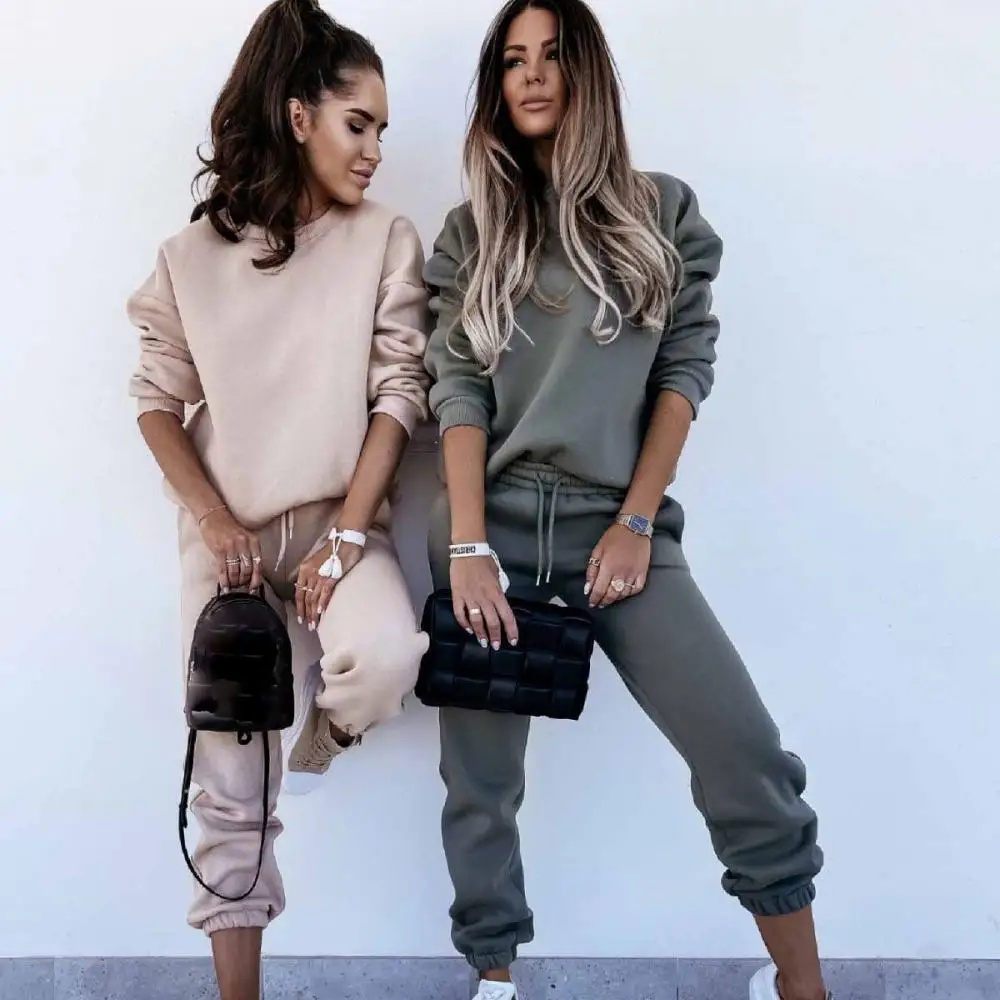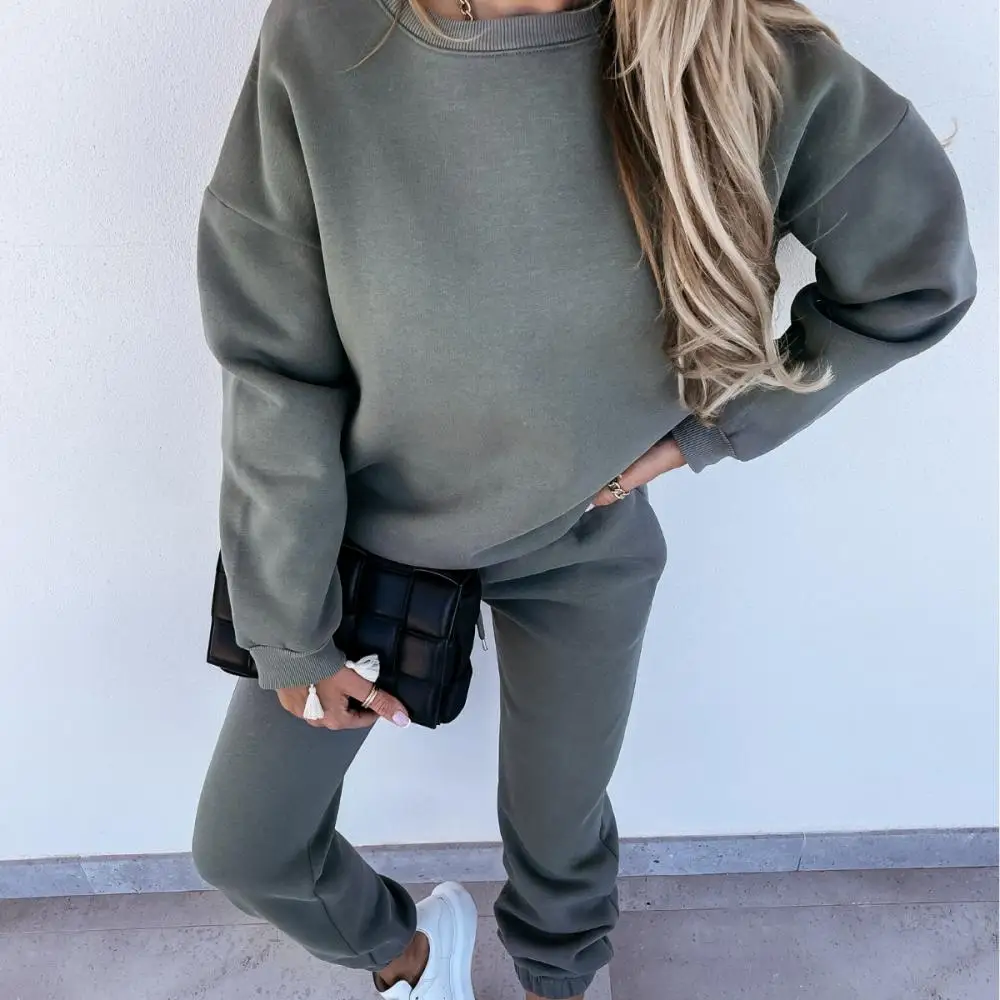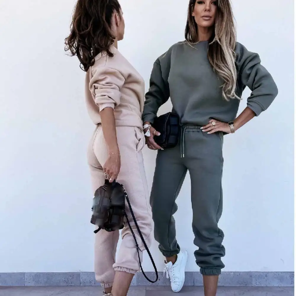 Однотонный Повседневный Спортивный костюм, женский комплект из 2 предметов, пуловер оверсайз + джоггеры, домашние штаны, костюмы, осенняя спортивная одежда с длинным рукавом