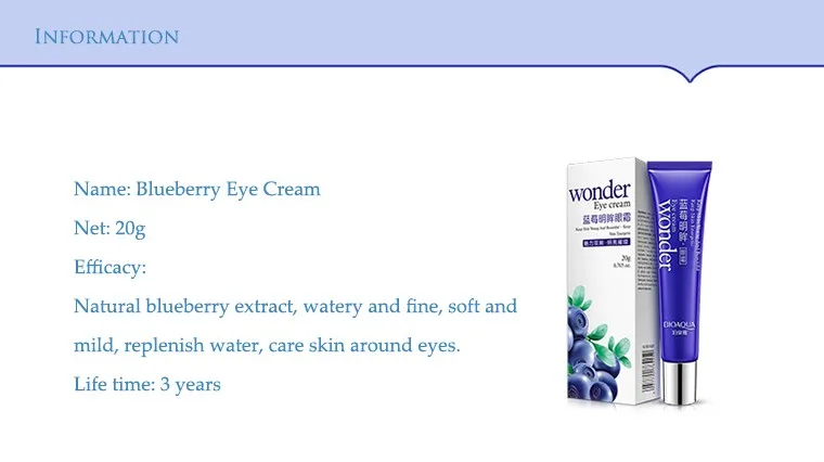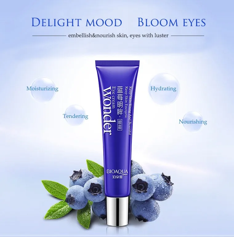 Натуральная Черничная эссенция для глаз, текстура гидрогеля, нежная, мягкая и нежная.Легко проникает и легко впитывается, увлажняет и питает кожу вокруг глаз.Эффективно уплотняет тонкие линии, мешки под глазами и темные круги вокруг глаз, выравнивает тон кожи.