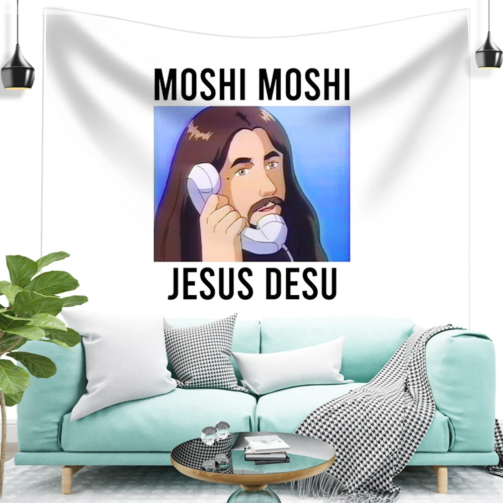 Забавный гобелен с мемами Moshi Jesus Desu, забавный гобелен с Иисусом на телефоне, украшение для спальни