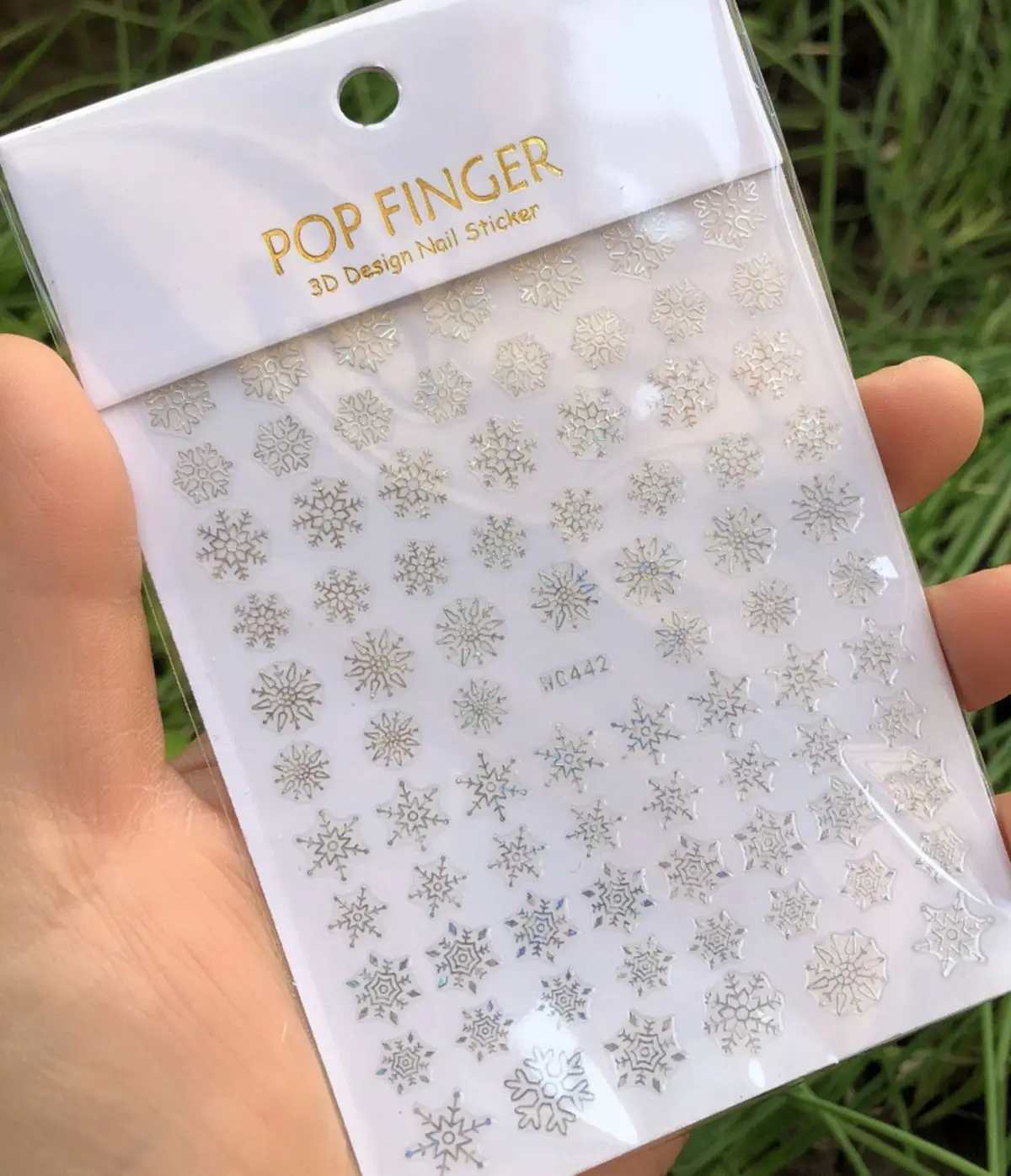 1 шт. 2021 Новый Зимний Рождественский Маникюр 3D лазерные Серебряные Снежинки наклейки для ногтей клейкий переводной слайдер для ногтевого дизайна наклейки