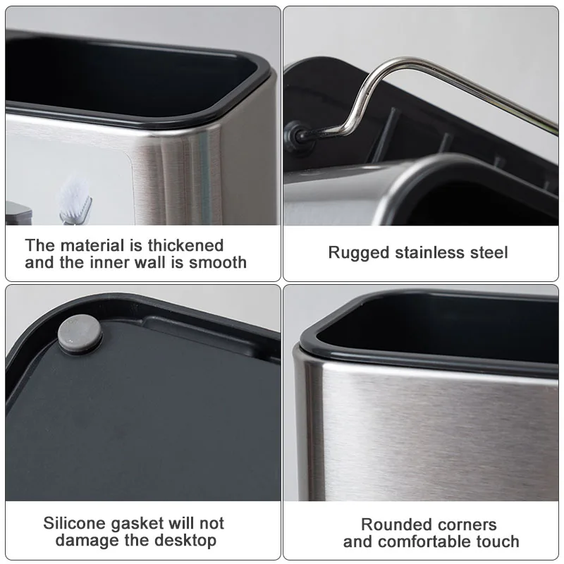 1. Нажатие на контейнер для дезинфицирующего средства для рук позволяет удобно Мойте руки.2. В контейнер для инструментов можно положить щетку, губку, кухонные ножницы и так далее.3. Отличный пищевой материал премиум-класса, безвкусный, экологичный, прочный и долговечный.4. Идеально подходит для ограниченного пространства вокруг раковины.5.100% удовлетворение: при возникновении любых вопросов, пожалуйста, свяжитесь с нами.