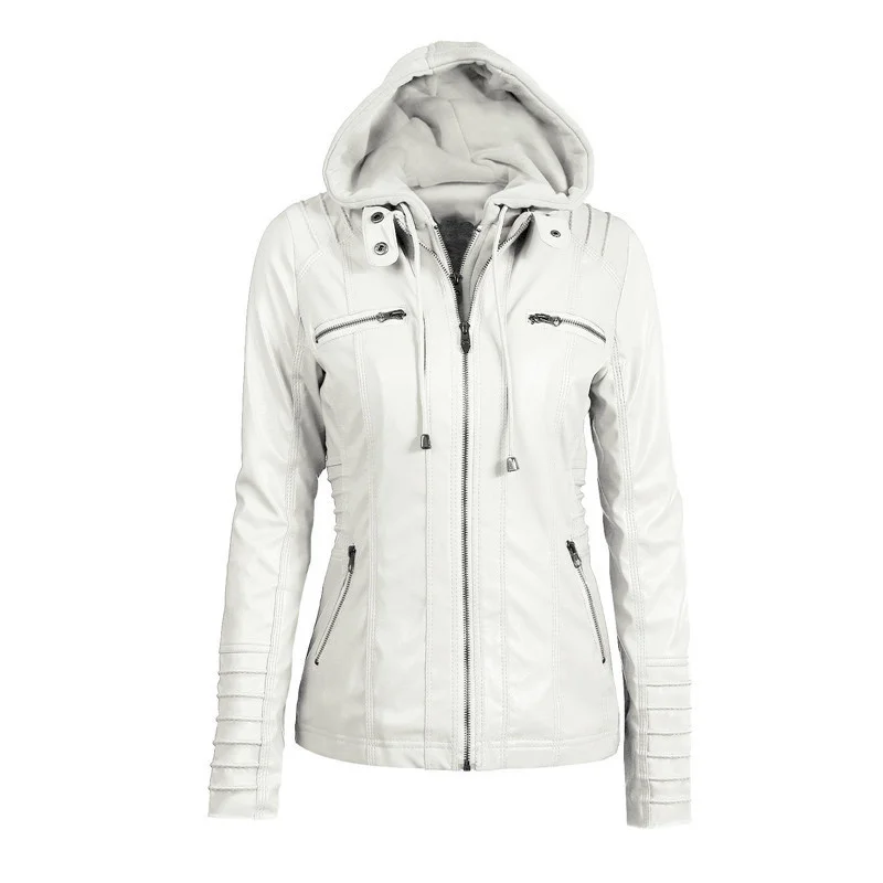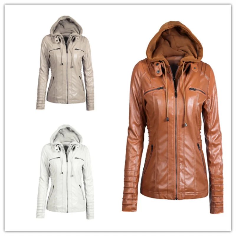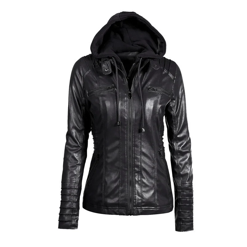 Куртка женская из искусственной кожи с капюшоном и съемным воротник...