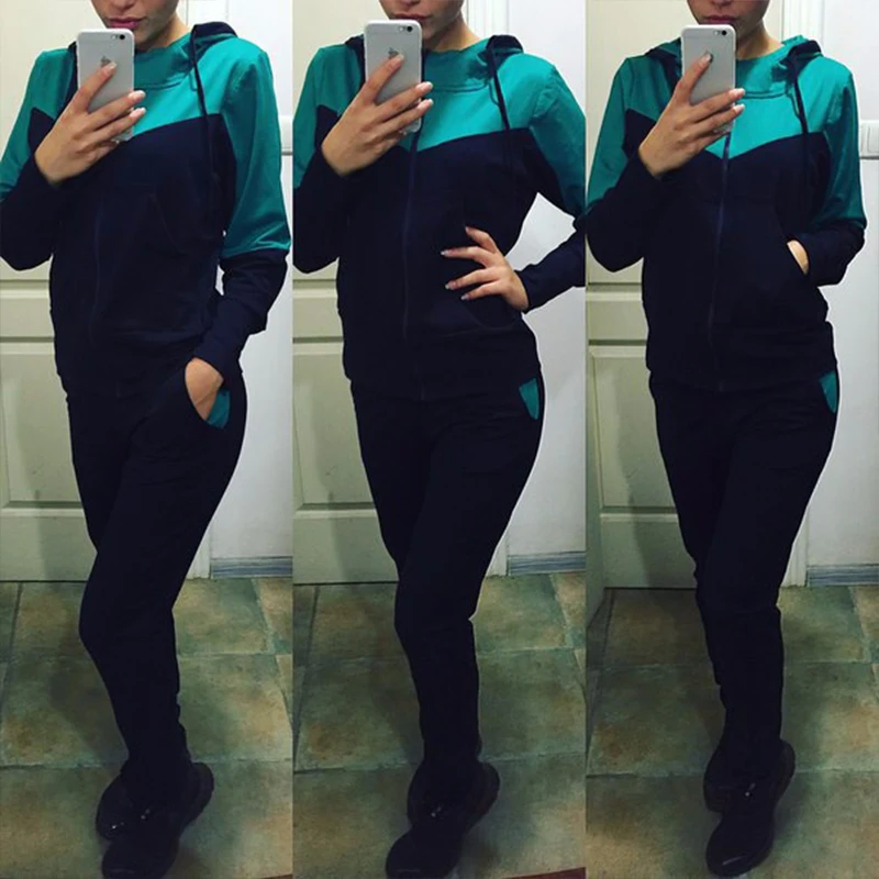 Женский спортивный костюм с цветными блоками, комплект из 2 предметов, толстовка с капюшоном и штаны, спортивный костюм для бега, спортивная одежда для спортивного зала, Повседневная тонкая одежда для отдыха