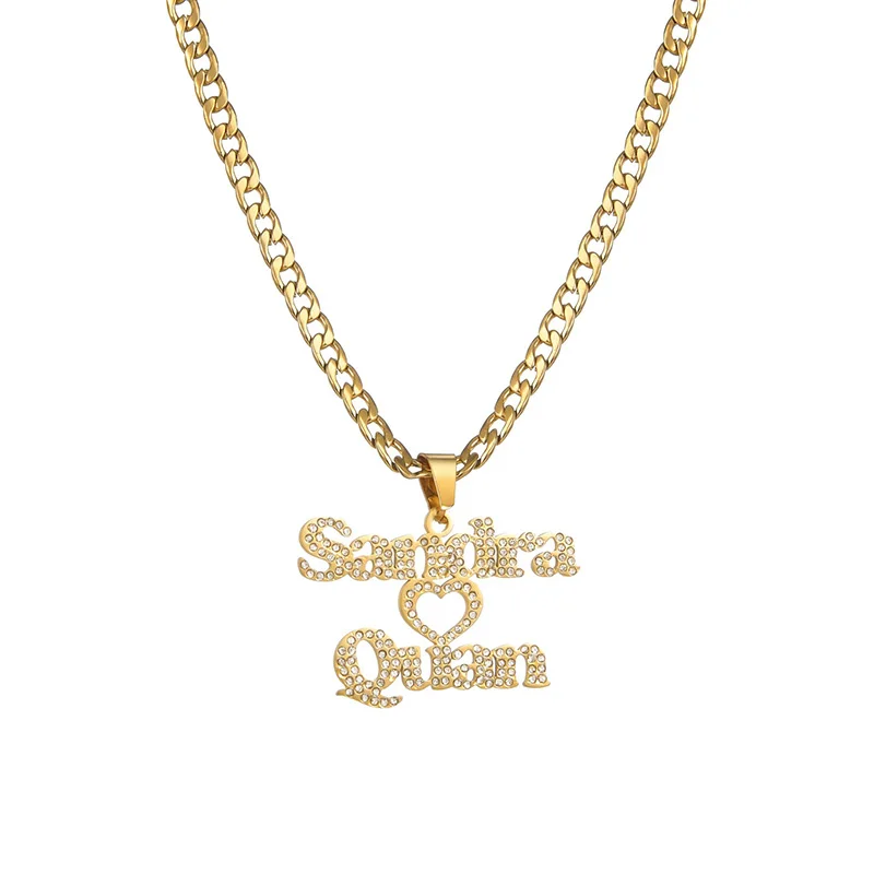 Название: индивидуальная именная табличка ожерелье для женщин на заказ Золото Нержавеющая сталь BlingBling сердце циркон кулон ювелирные изделия подарок