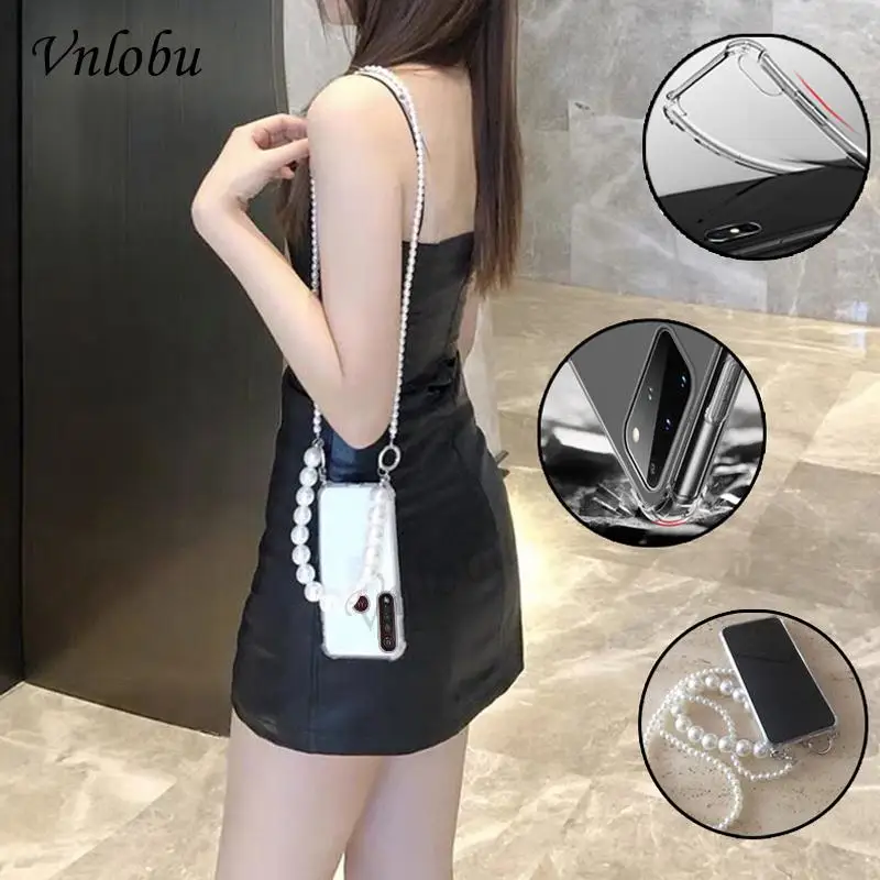 Жемчужный чехол для браслетов с ремешком и цепочкой для POCO X3 Pro...