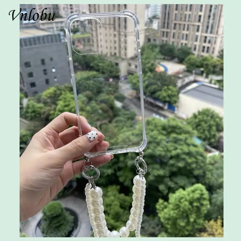 Прозрачный противоударный чехол-накладка из ТПУ с жемчужным ожерель...