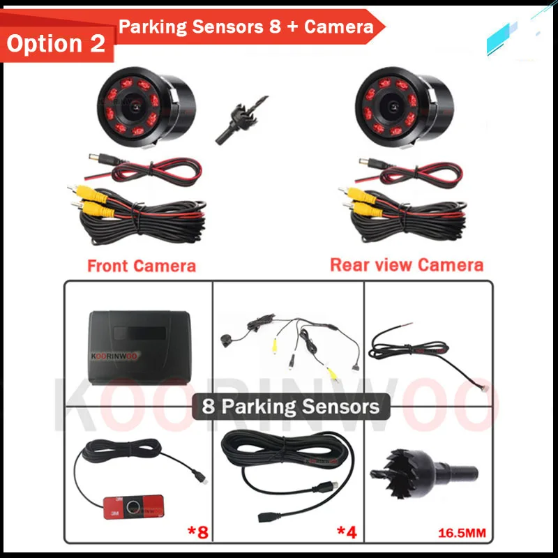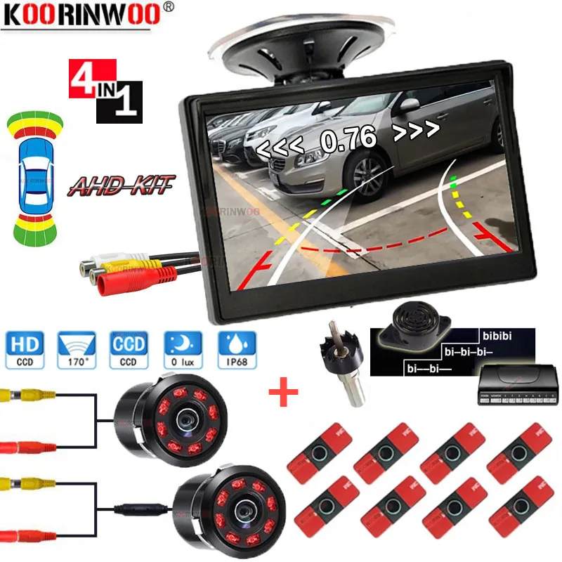 Интеллектуальная система Koorinwoo для автомобилей, оригинальная плоская камера 13 мм с 8 датчиками, Передняя камера, датчик парковки, 5-дюймовый экран, автомобильные аксессуары