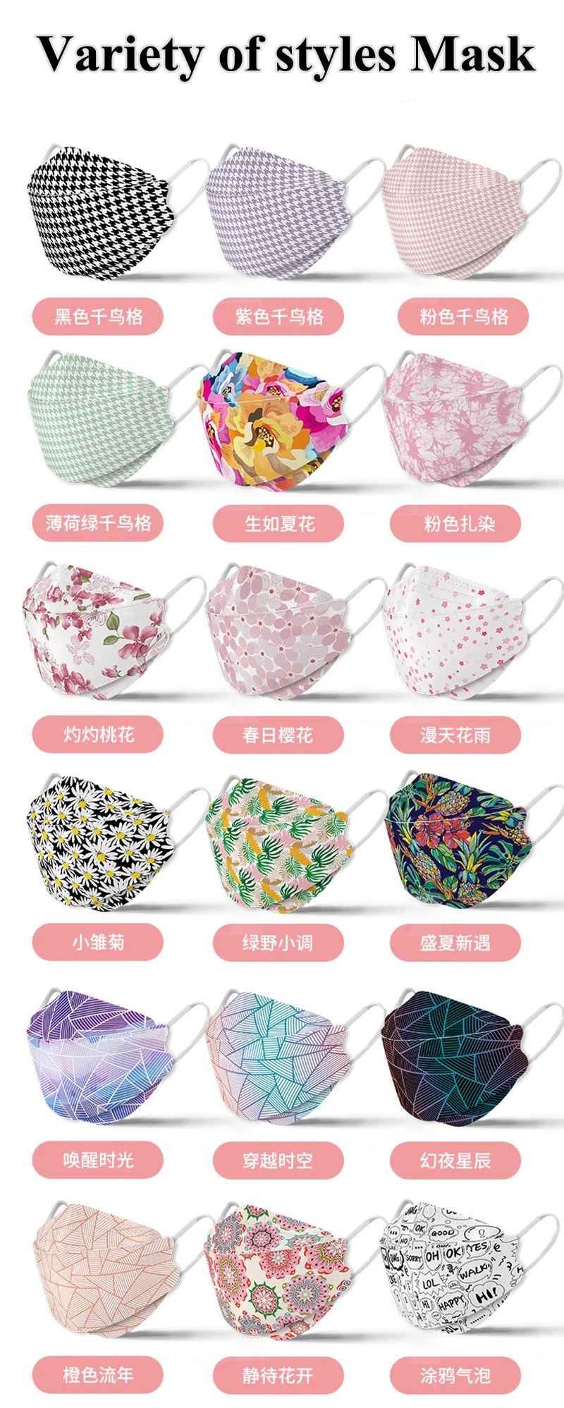 Маска KN95 для взрослых, маска N95mask с цветочным принтом, четырехслойная дышащая маска для лица, индивидуальная упаковка, одноразовые маски