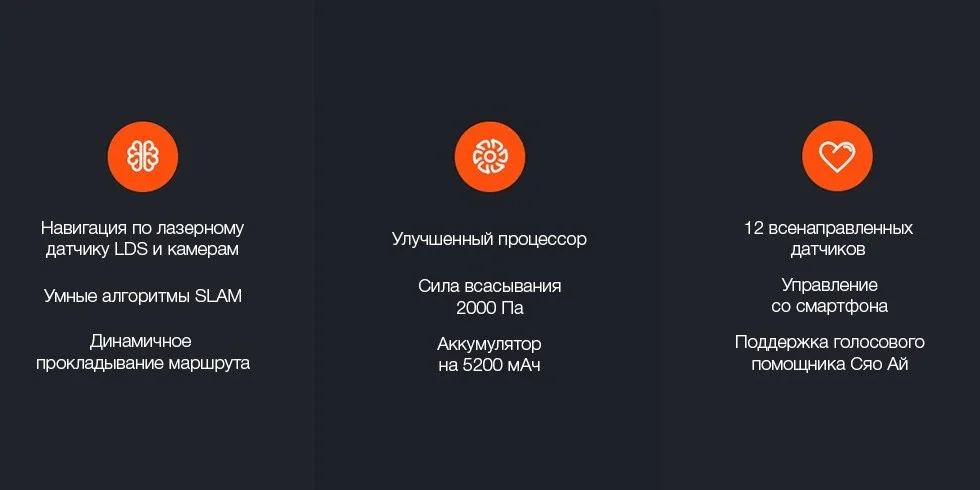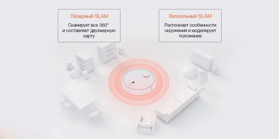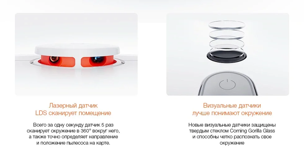 Революционное сочетание технологий навигацииС помощью лазера LDS сканируется помещение, и составляется двухмерная карта, а визуальные датчики улавливают