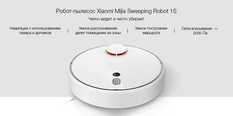 Робот-пылесос Xiaomi Mijia Sweeping Robot 1S (SDJQR03RR) (белый) Робот Пылесос Xiaomi Сухая уборка, Mi Home, Мощность 58 W